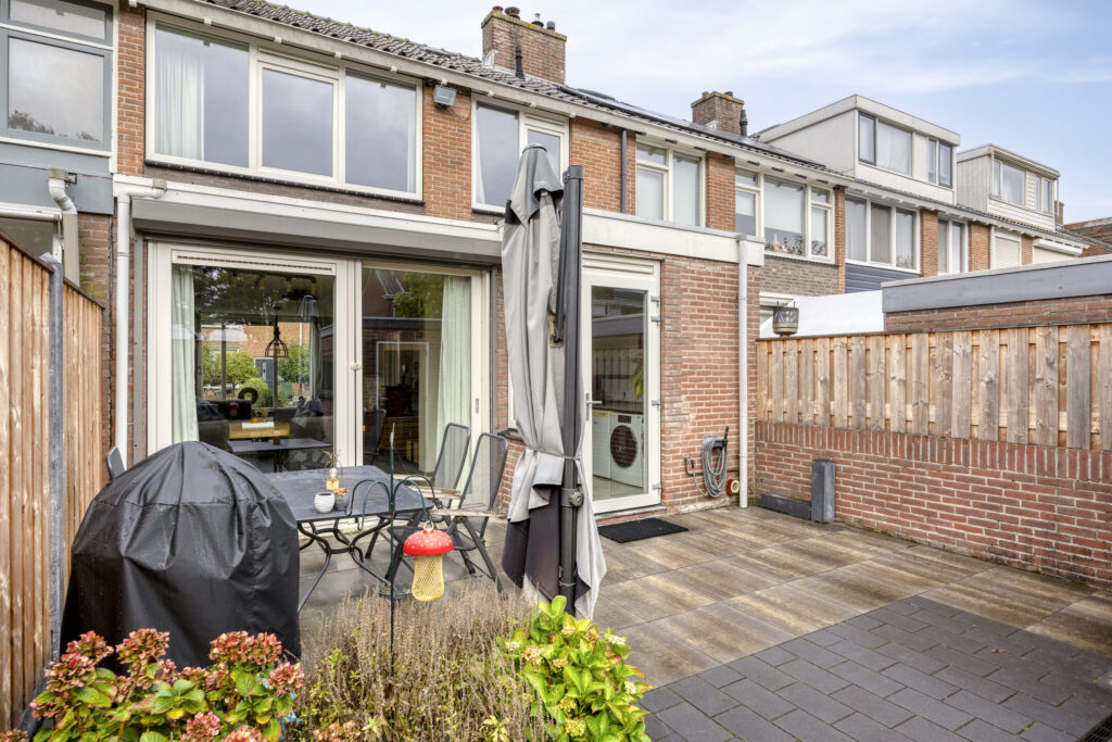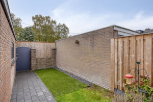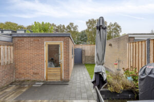 De woning heeft zowel een fraai aangelegde voor- en achtertuin. De voortuin heeft twee vaste plantenbakken met grind. De fijne, onderhoudsvriendelijke achtertuin met veel privacy is gelegen op het zuidoosten en heeft een achterom, kunstgras en een betegeld terras. De garage is via een loopdeur vanuit de tuin toegankelijk. Vanuit het pleintje aan de achterzijde is de garage middels een kanteldeur bereikbaar. De garage is voorzien van elektra.