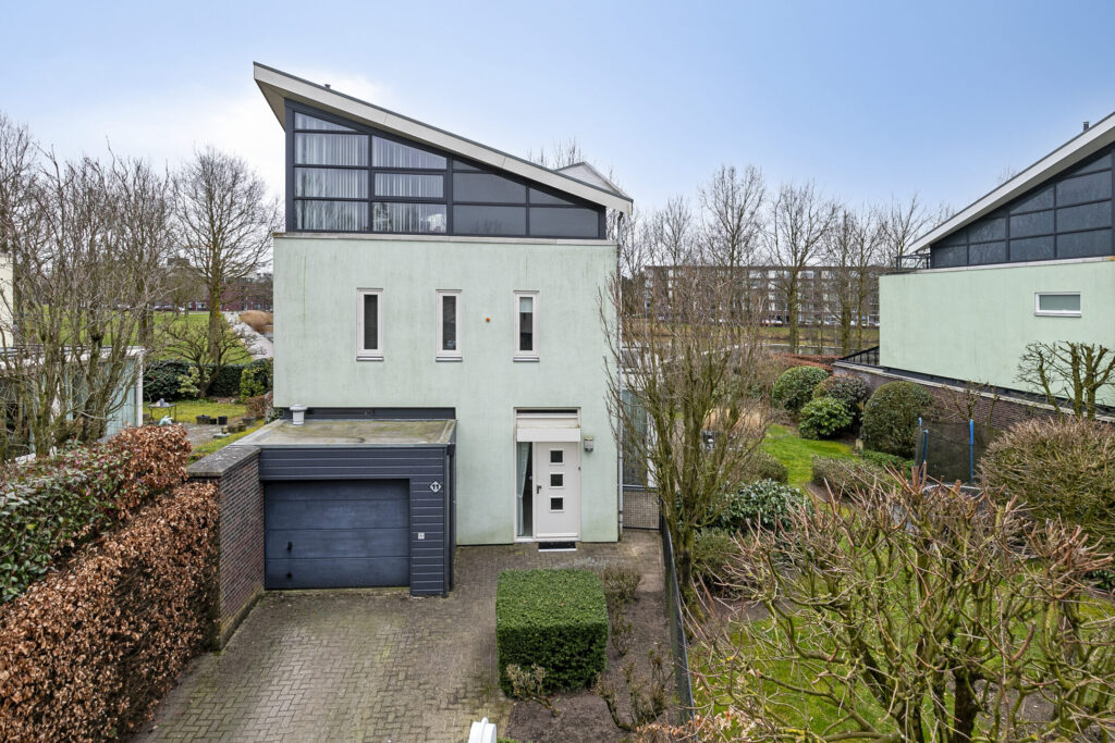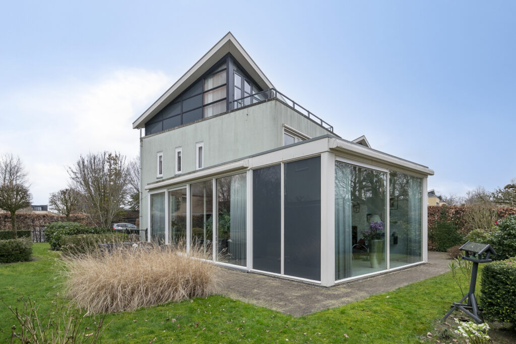 Op een schitterende locatie gelegen aan een park, onder architectuur gebouwde vrijstaande woning. Ideale indeling, een ruim perceel met meerdere terrassen en alle rust in een prachtig aangelegde en zonnige tuin.