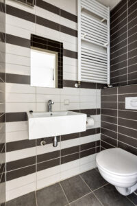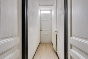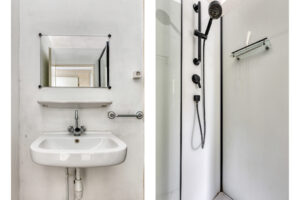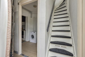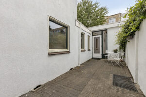 Vanuit de keuken heeft u tevens toegang tot de bijkeuken, hier is de aansluiting voor de was- en droogapparatuur aanwezig. Tussenhal met opstelplaats voor de Cv-ketel (bj. 2018), loopdeur naar de stadstuin, trap opgang naar de eerste verdieping en toegang tot de badkamer. Badkamer voorzien van douchecabine, wastafel en opbergruimte. tussenhal met wastafel met toegang tot het achterhuis (later aangebouwd), kantoor/werkkamer met toegang tot slaapkamer III voorzien van volledig betegelde toiletruimte met wastafel, vanuit de slaapkamer heeft u middels een loopdeur toegang tot de stadstuin.