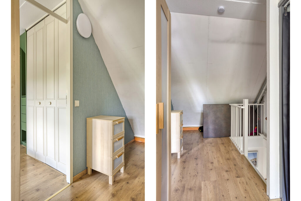 - Moderne, geheel betegelde badkamer (2022), voorzien van een inloopdouche met regen- en handdouche, tweede toilet, wastafelmeubel met dubbele kraan, ligbad met handdouche, wandkast en designradiator. De badkamer is voorzien van een dakkapel met draai/kiep raam. Achter de schuine kant is er nog extra bergruimte aanwezig.
