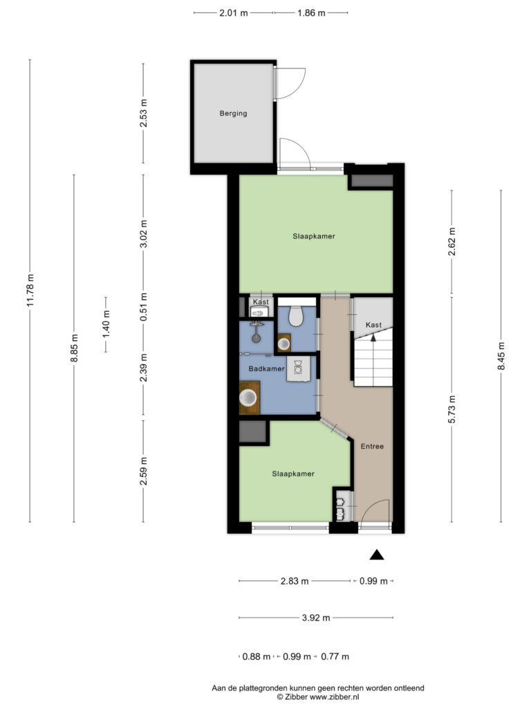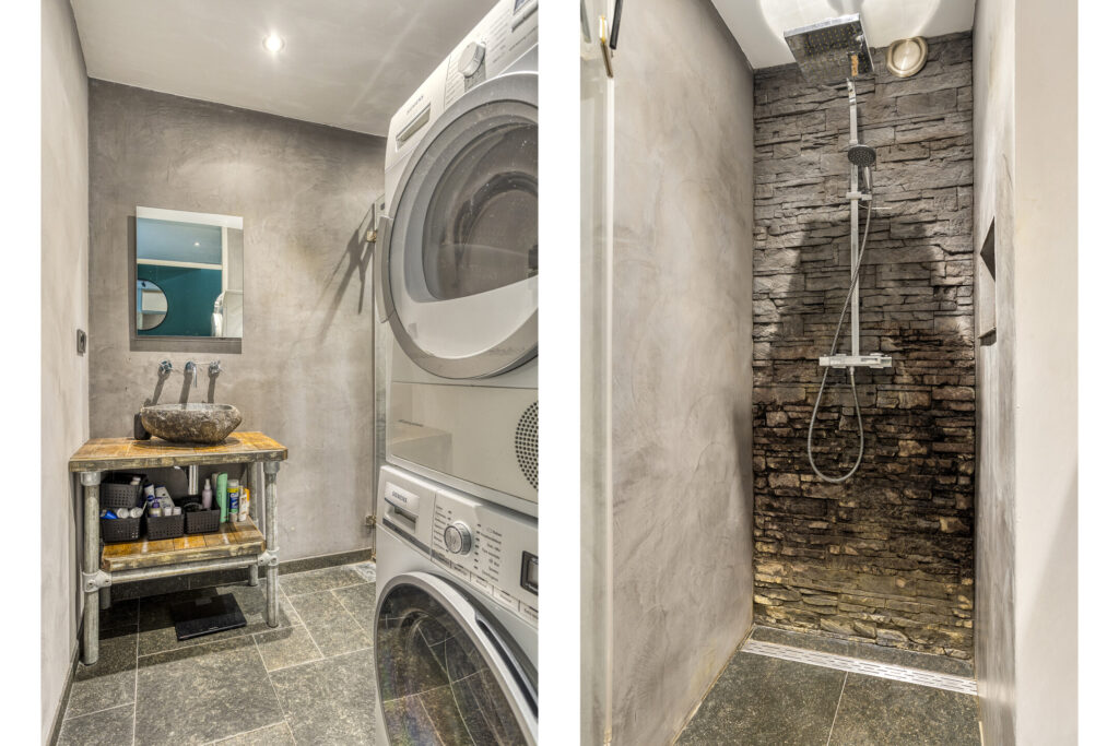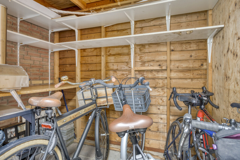 Via de eigen voordeur betreedt u de hal welke toegang biedt tot de meterkast, garderobe en trapopgang naar de 1e verdieping. Op de begane grond vindt u twee slaapkamers – één slaapkamer/kantoor aan de voorzijde en een tweede slaapkamer aan de achterzijde met vaste kast (voorzien van Cv-ketel en mechanische ventilatie-unit) en toegang tot de zonnige tuin en de vrijstaande houten berging met elektra – ideaal voor het stallen van fietsen of extra opslagruimte. Verder is er een moderne badkamer met ruime douche, wastafel met natuurstenen waskom en de aansluiting voor de was- en droogapparatuur. parte moderne toiletruimte met hangend closet en fonteintje (natuurstenen waskom). Onder de trap naar de eerste verdieping is een trapkast aanwezig met veel opbergruimte.