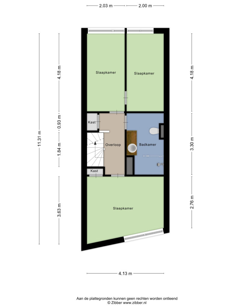 - Slaapkamer 2 (ca. 4.18m x 2.03m) is gelegen aan de achterzijde;