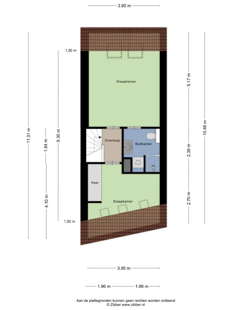 - Slaapkamer 3 (ca. 4.18m x 2.00m) is eveneens gelegen aan de achterzijde van de woning (momenteel toegankelijk vanuit slaapkamer 2);