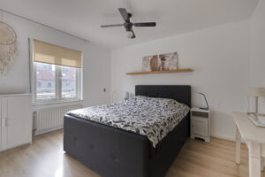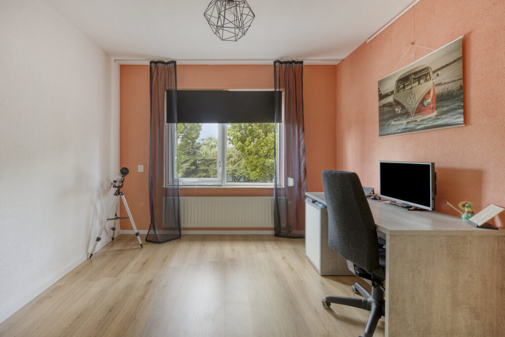 - Slaapkamer II, gelegen aan de voorzijde met laminaatvloer en spachtelputz wandafwerking.