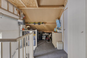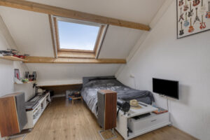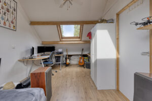 Voorzolder afgewerkt met vloerbedekking en voorzien van aansluitingen ten behoeve van de wasapparatuur. Zolderslaapkamer III, met laminaatvloer en 2x Velux dakraam.