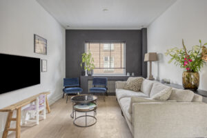 - Voor de gehele woning geldt dat de wanden en de plafonds voorzien zijn van glad stucwerk met inbouwverlichting.