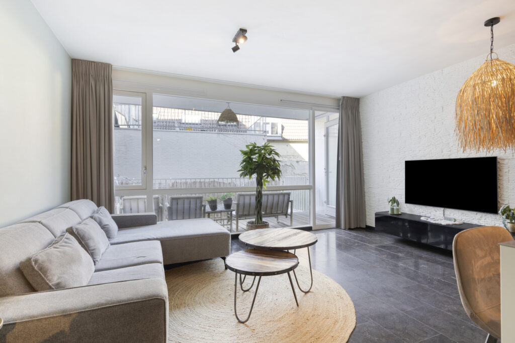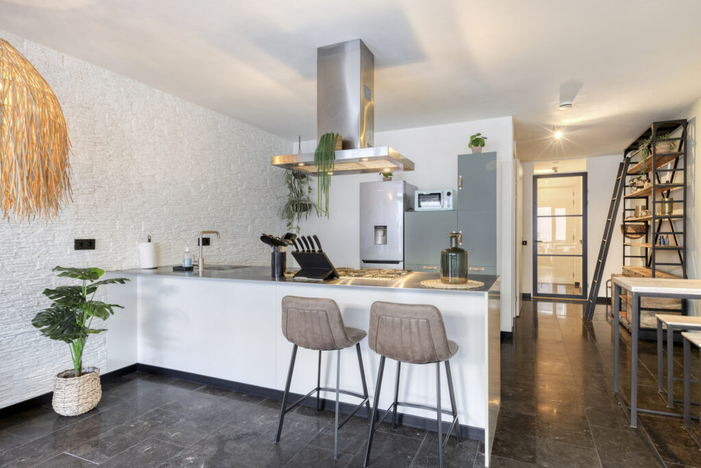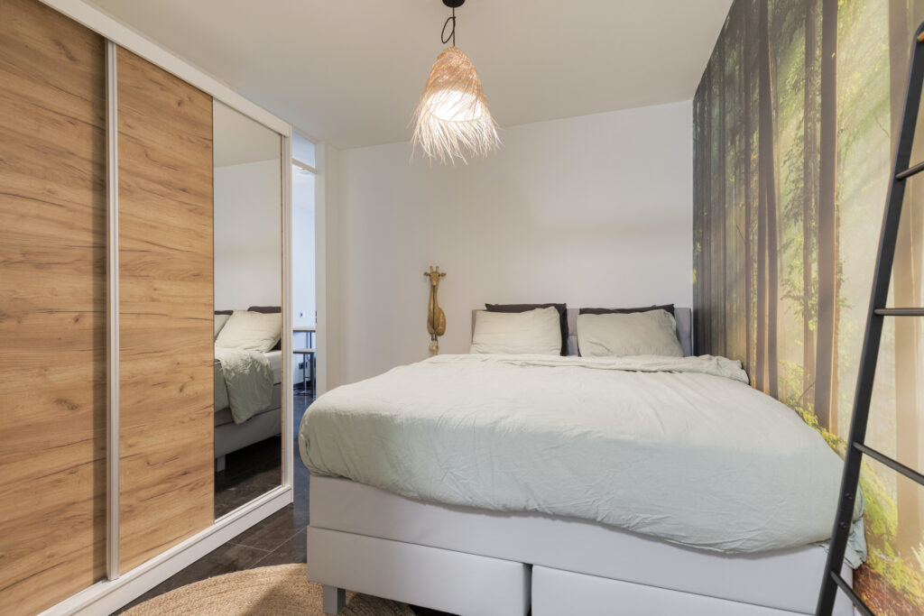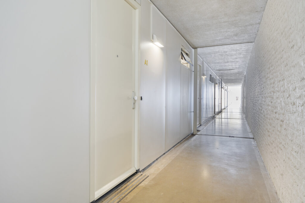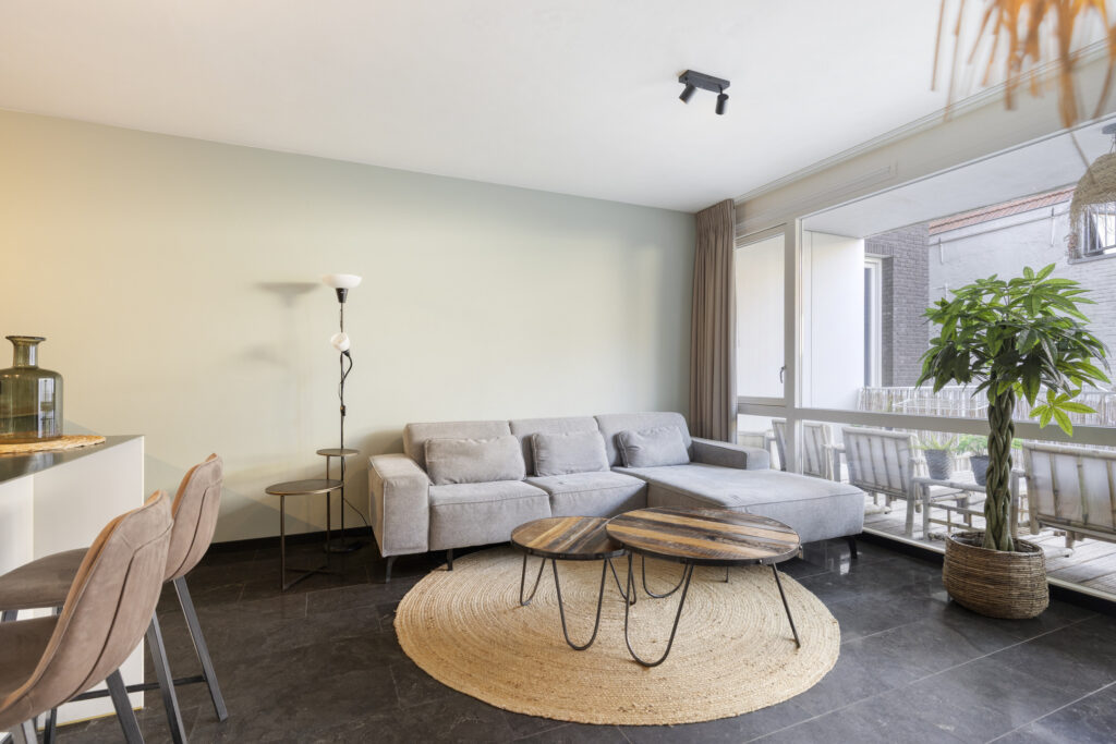 Hal-/entree voorzien van natuurstenen tegelvloer, vernieuwde meterkast (6 groepen en 2 aardlekschakelaars), toegang tot de stookruimte, wasruimte, toilet en living. Stookruimte met opstelplaats HR combiketel Remeha Avanta (2010). Wasruimte met aansluitingen ten behoeve van wasapparatuur. Toilet met zwevend toilet, fonteintje en mechanische ventilatie. Living voorzien van natuurstenen tegelvloer, open keuken, toegang tot de slaapkamer en loopdeur naar het ruime balkon. Moderne keuken voorzien van kookeiland met verzonken spoelbak, 6-pits gasfornuis met oven, recirculatieafzuigkap, vaatwasser en Amerikaanse koelkast. Slaapkamer met directe toegang tot de badkamer. Badkamer met wastafelmeubel, douchecabine en mechanische ventilatie.