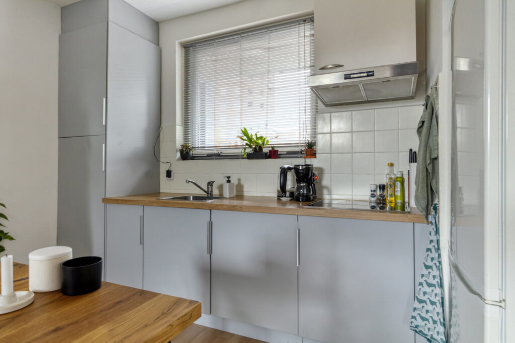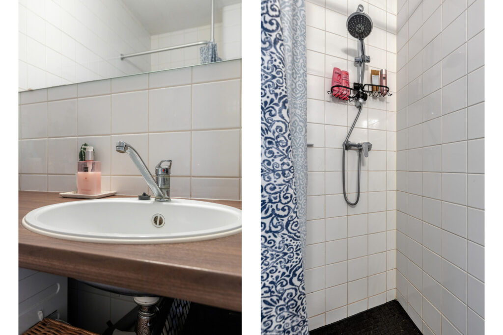 Entree, hal met video-intercom met toegang tot volledige betegelde badkamer, voorzien van een douche, hangcloset en ruime wastafel, tevens treft men hier de aansluiting ten behoeve van de wasapparatuur. Ruime woonkamer (ca. 7.00 x 3.58m.) met toegang tot het balkon op het zonnige zuiden (ca. 2.72 x 1.41m). De open keuken is gelegen aan de galerijzijde en voorzien van een moderne inrichting in wandopstelling met diverse kastruimte, aan inbouwapparatuur is aanwezig een elektrische kookplaat, een koelkast (los) en een afzuigkap. Vanuit de woonkamer is de ruime slaapkamer te bereiken (ca. 4.64 x 2.66m.).