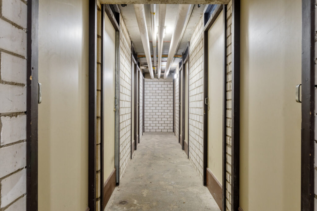 Centrale afgesloten hal/entree met brievenbussen, toegang tot de bergingen, de parkeerplaatsen, het trappenhuis en de lift. Tevens de eigen afsluitbare berging met elektra.