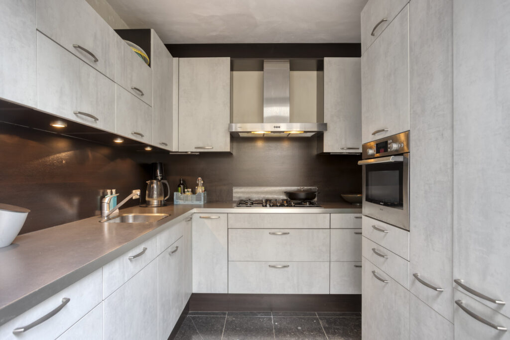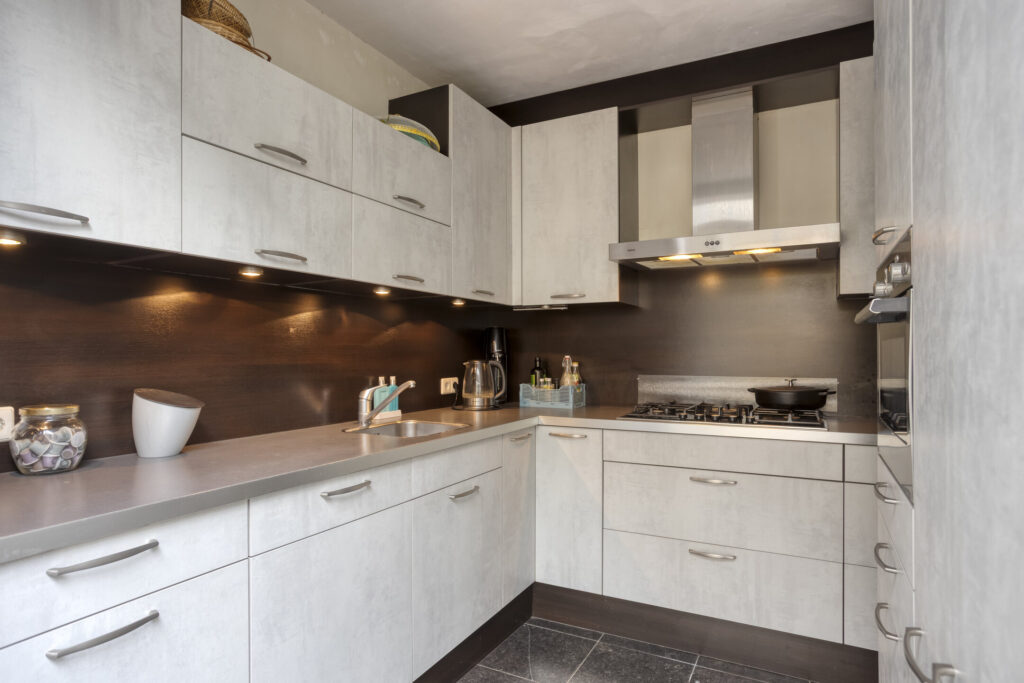 Entree/hal met toegang tot de trapopgang naar de eerste verdieping, meterkast, deels betegelde toiletruimte met hangend closet, vaste kast met bergruimte en extra opbergruimte onder de trap. Lichte en uitgebouwde living, voorzien van pleisterwerkwanden en een pvc-vloer. De living biedt voldoende ruimte voor het creëren van verschillende leefruimtes. Aan de voorzijde van de living bevindt zich een sfeervolle open haard. De woning is in 2000 aan de achterzijde uitgebouwd, waardoor er een fraaie ruimte is ontstaan die middels openslaande tuindeuren toegang biedt tot de achtertuin. In de uitbouw zijn tevens een lichtstraat en inbouwspots aanwezig. Op de vloer ligt Belgisch hardsteen met daaronder vloerverwarming. De keuken is aan de achterzijde van de woning gesitueerd en geplaatst in een hoekopstelling met een losse wandmodule. Aan inbouwapparatuur zijn aanwezig: 5-pits gaskookplaat, afzuigkap, vaatwasser, combi-oven, koelkast en vrieslades. Tevens is er veel opbergruimte aanwezig in de kasten en lades.