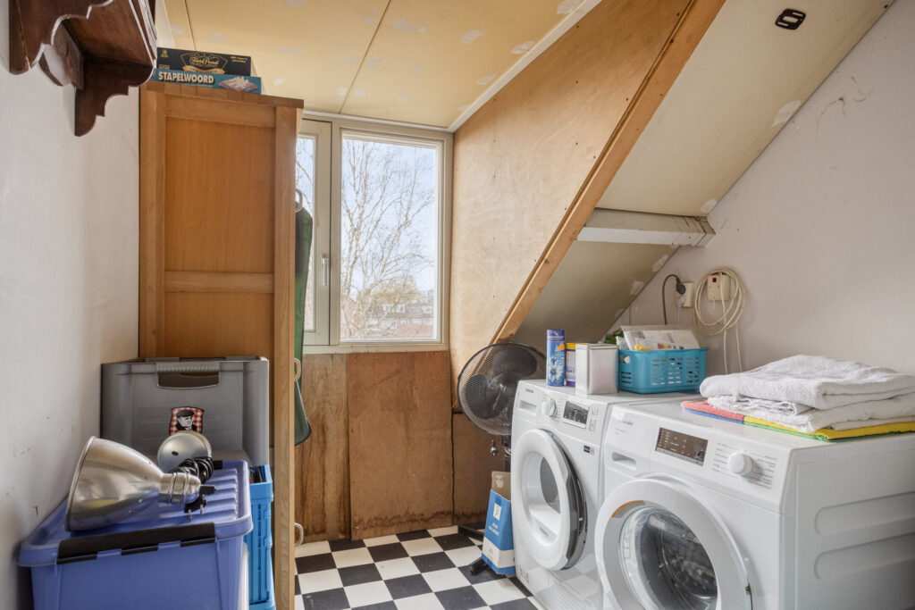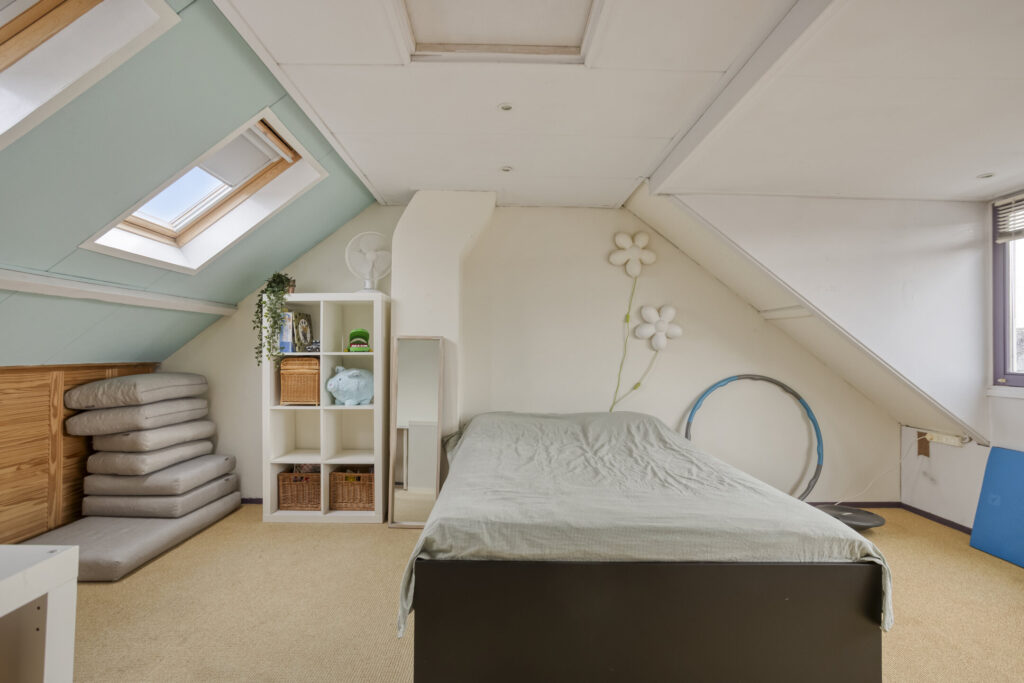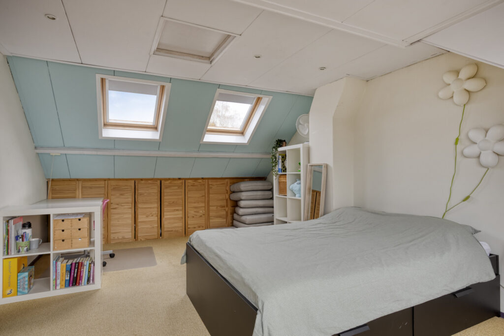 Via een vaste trap bereikt u de overloop, welke toegang biedt tot de cv- annex wasruimte. Hier is voldoende ruimte voor het plaatsen van was- en droogapparatuur. Tevens bevindt zich hier de opstelplaats van de cv-combiketel (bj. ca. 2016). Verder is er een vaste inloopkast met veel opbergruimte. Riante slaapkamer IV, voorzien van twee Velux-dakramen, een dakkapel en handige bergruimte achter de knieschotten aan zowel de voor- als de achterzijde. Vanuit deze slaapkamer is via een luik toegang tot de vliering met extra opbergruimte.