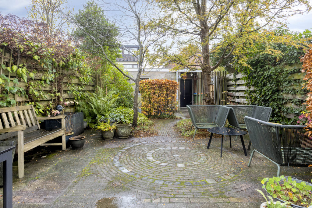 De voortuin is voorzien van bestrating en volwassen beplanting als erfafscheiding. De voortuin zorgt voor meer woongenot en extra privacy in de woning. De verrassend ruime en groene achtertuin is voorzien van een groot betegeld terras aan de uitbouw met elektrisch zonnescherm, diverse volwassen beplanting en bomen. Met zijn ligging op het zuidwesten kunt u heerlijk genieten van de zon op verschillende momenten van de dag. Ook is er veel privacy. Aan de achterzijde van de tuin bevindt zich de ruime stenen berging. Deze is voorzien van een overkapping en elektra. Tevens is er een handige achterom aanwezig.