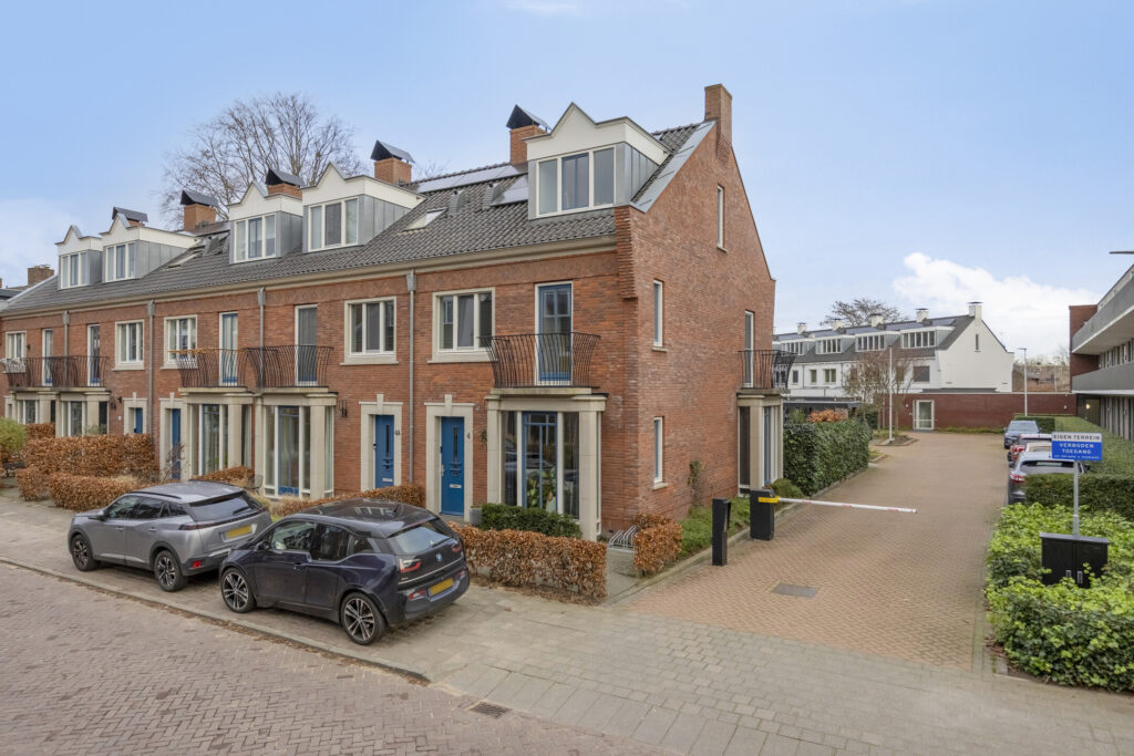 – Ruime hoekwoning met een fraaie tuin met overkapping, berging achterom en eigen parkeerplaats op een privéterrein afgesloten met slagboom (servicekosten ca. € 18 per maand);