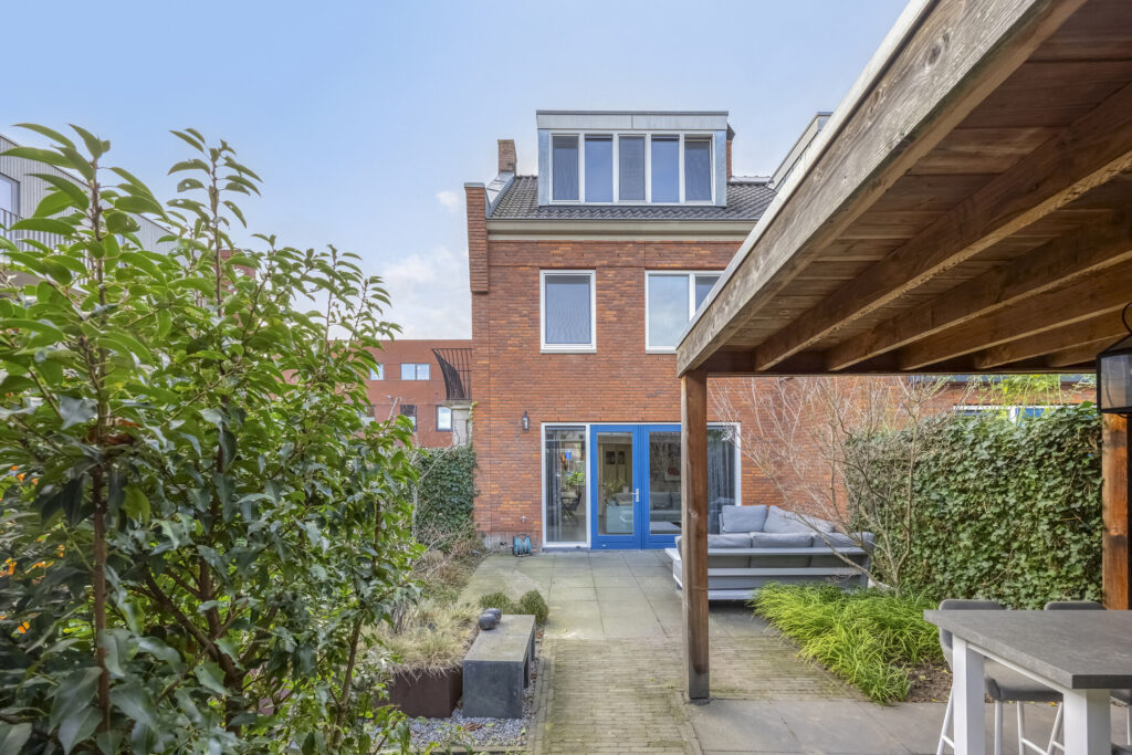 Fraai aangelegde achtertuin voorzien van een betegeld terras aan de woning, borders met beplanting. Aan de achterzijde van de tuin is een houtenoverkapping aanwezig hier kunt u heerlijk vertoeven. Tevens is er een houtenberging aanwezig alsmede een achterom die toegang biedt tot de parkeerplaats aan de achterzijde van de woning.