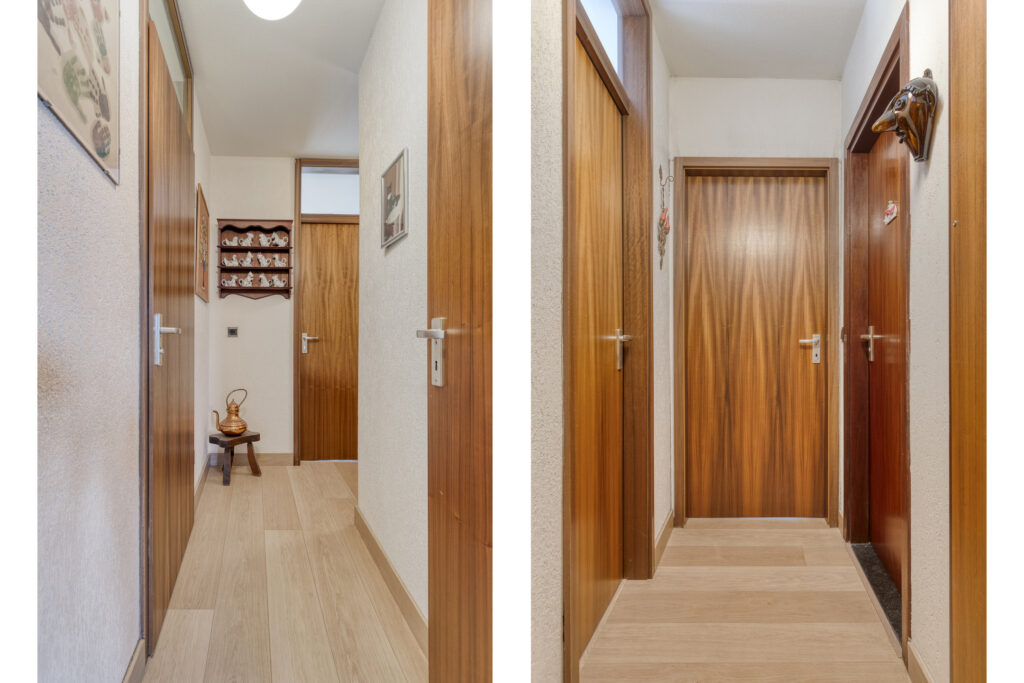 Vanuit de hal bereikt u de hal die toegang biedt tot de drie slaapkamers en twee badkamers te weten;