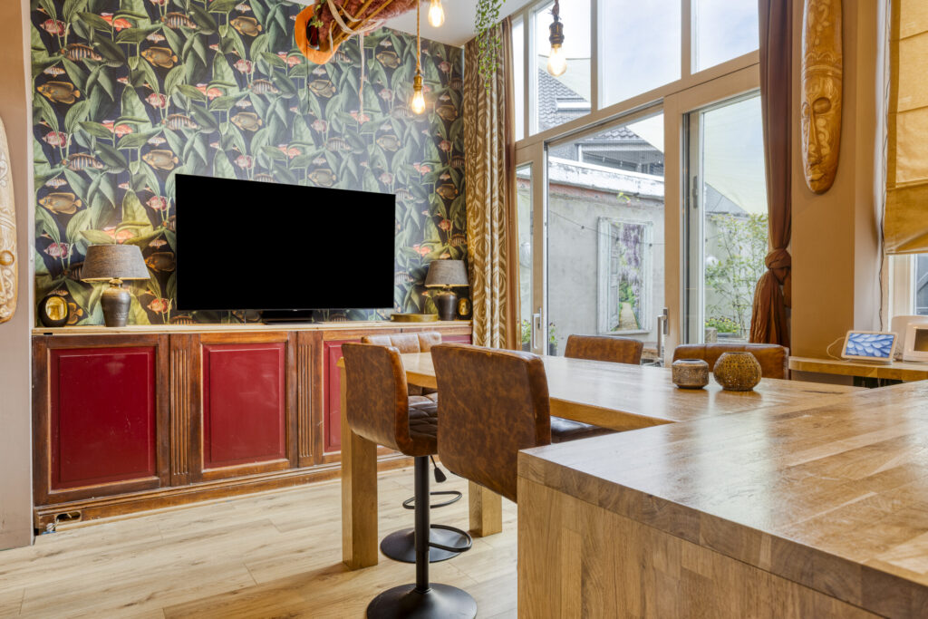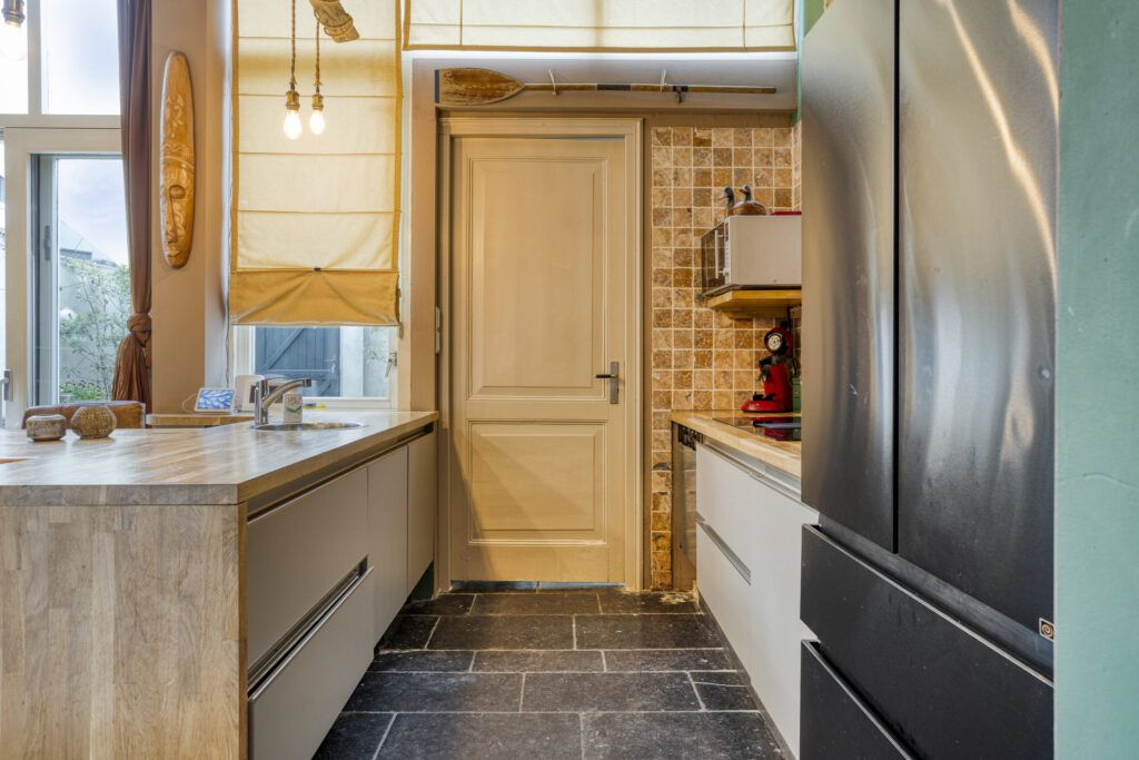 Sfeervolle en ruime living met schouw, hoge plafonds met sierlijsten, glas-in-lood bovenlichten en dubbele en-suite deuren naar woonkeuken. De living is ruim van opzet en biedt ruimte voor een gezellig zithoek bij de schouw met een fraai vrij uitzicht over de oude singel aan de voorzijde van de woning. Op de vloer van de living en het zitgedeelte van de keuken ligt laminaat en de wanden zijn deels voorzien van lambrisering deels stucwerk. Riante woonkeuken gelegen aan de achterzijde van de woning. Vanuit de woonkeuken heeft u middels openslaande deuren toegang tot de achtertuin. Keuken voorzien van een hardstenen blad, spoelbak, losse koelkast met vrieslades, oven, vaatwasser, 4-pits inductiekookplaat met inbouwde afzuiging. Vanuit de keuken heeft u toegang tot de kelder (ca. 3.00m x 3.00m) op stahoogte (1.80m), vaste kast met veel opbergruimte en de opstelplaats voor de CV-installatie, tevens is hier een douchruimte aanwezig. Aan de tuinzijde van de keuken is er toegang tot de ruime slaapkamer. Vanuit de slaapkamer heeft u middels een schuifpui tevens toegang tot de achtertuin. Vanuit de slaapkamer bereikt u de riante inpandige garage.