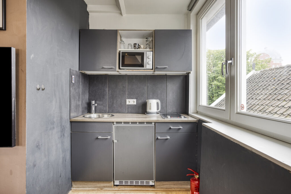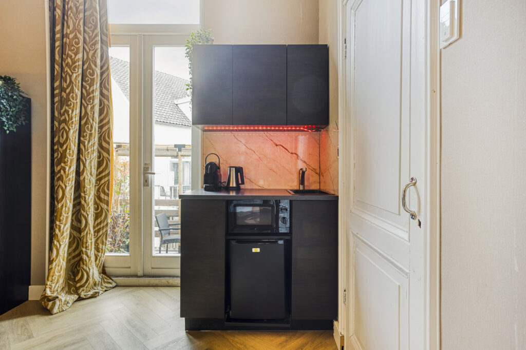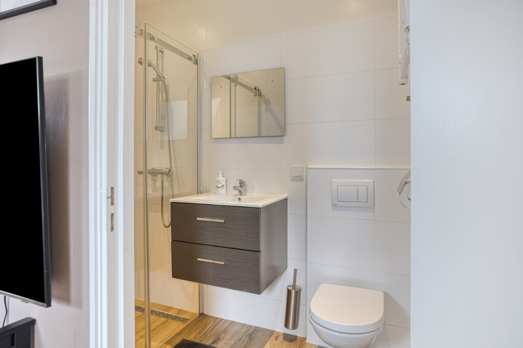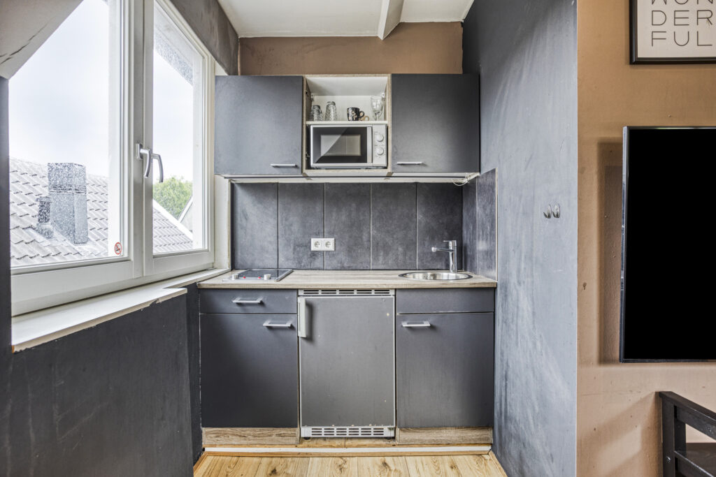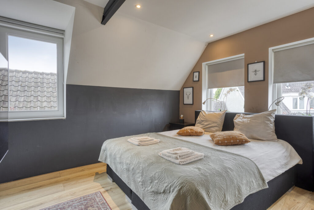 – Slaapkamer III gelegen aan de achterzijde van de woning en voorzien van een eigen moderne badkamer en kitchenette. In de badkamer treft u een douche, wastafelmeubel en een hangend closet. Tevens is er airco en een dakraam aanwezig.