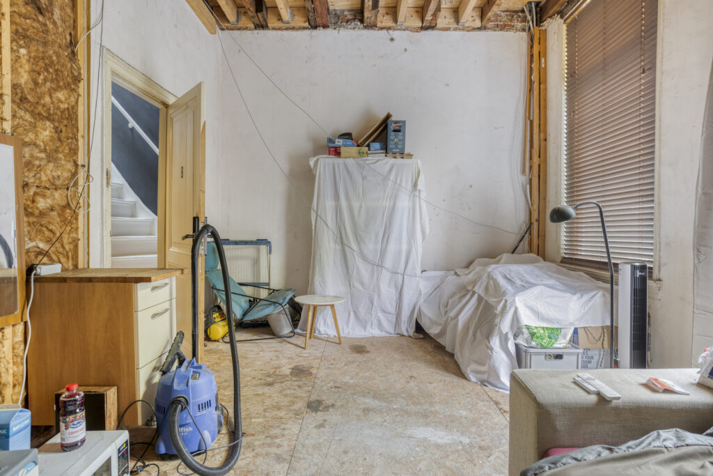 – Slaapkamer IV gelegen aan de voorzijde van de woning en voorzien van een eigen moderne badkamer en kitchenette. In de badkamer treft u een douche, wastafelmeubel en een hangend closet. Tevens is er airco en drie dakramen aanwezig. Middels een luik heeft u vanuit deze slaapkamer toegang tot de vliering met vel opbergruimte.
