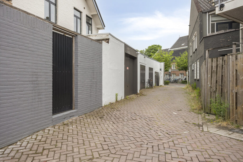 De gezellige stadstuin is gelegen op het zonnige westen en volledig voorzien van bestrating en een achterom.