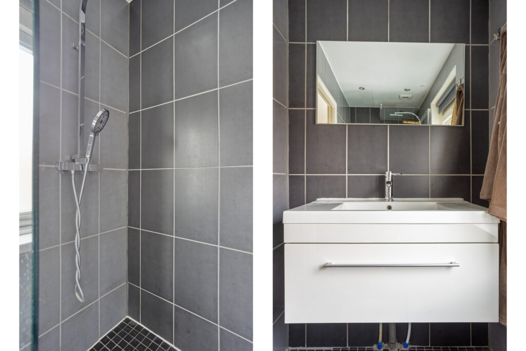 – Badkamer (ca. 2.78 x 1.23m.) met vloerverwarming, inloopdouche met thermostaatkraan en wastafelmeubel.