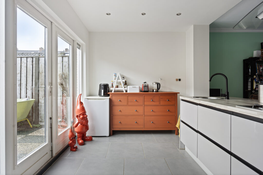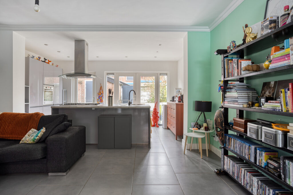 – Ruime en lichte woonkamer met uitbouw over de volledige breedte;