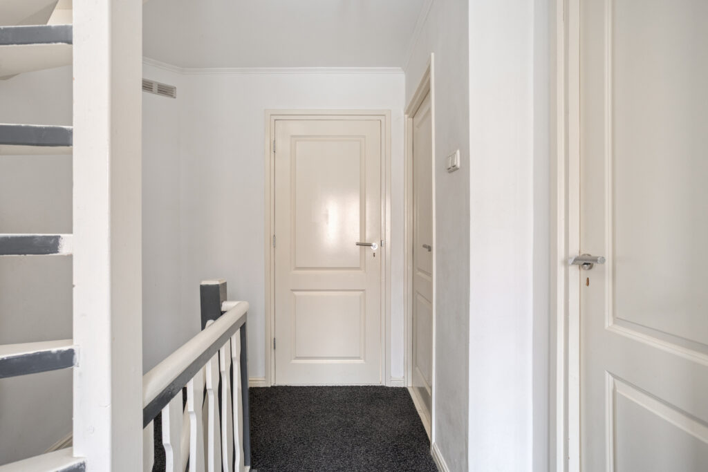 Royale overloop met toegang tot 3 slaapkamers, badkamer en trapopgang naar de 2e verdieping: