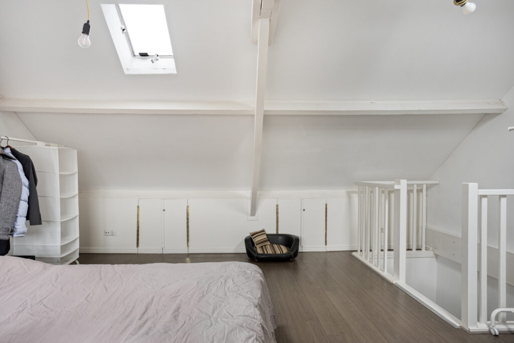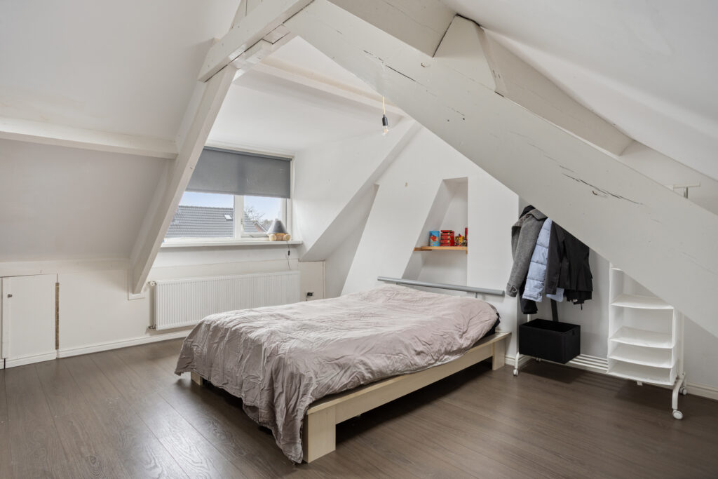Middels vaste trap toegang tot de royale tweede verdieping waar opstelplaats voor de hoog-rendement c.v.- ketel (Intergas HRE, bouwjaar 2020) en aansluiting ten behoeve van de wasapparatuur; open zolder (ca. 4.95 x 3.39m.) met dakkapel, twee dakvensters en bergruimte achter de knieschotten. Deze ruimte is uitermate geschikt voor het realiseren van twee extra slaapkamers.