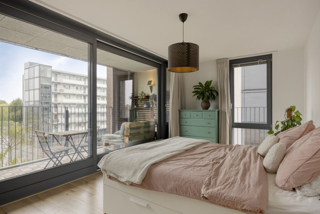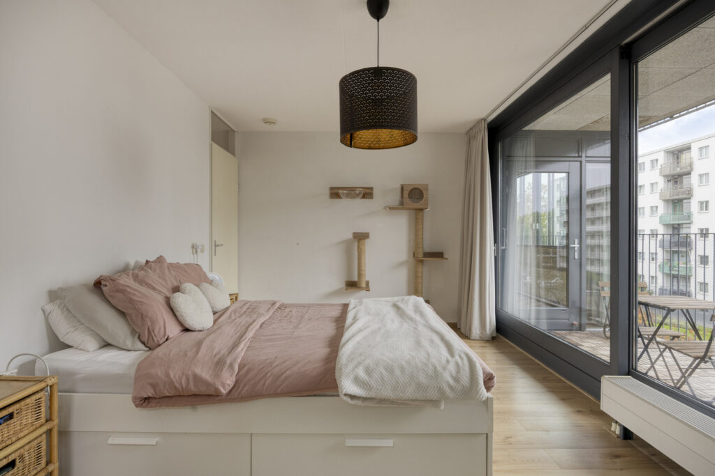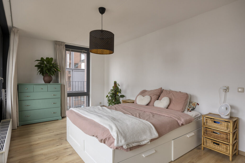 – Slaapkamer I: gelegen aan de voorzijde en balkonzijde met schuifpui naar het balkon;