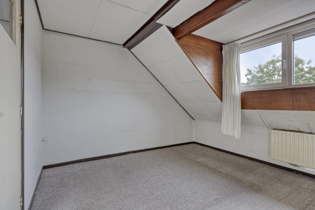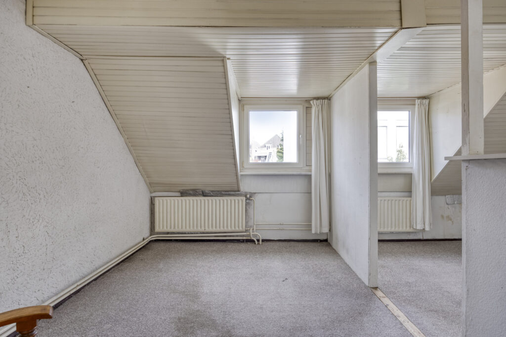 Via een luik op de overloop is de ruime vliering bereikbaar, waarbij de mogelijkheid is om een vaste trap en dakopbouw/ Velux dakramen te plaatsen waardoor er een ruime verdieping bijkomt.