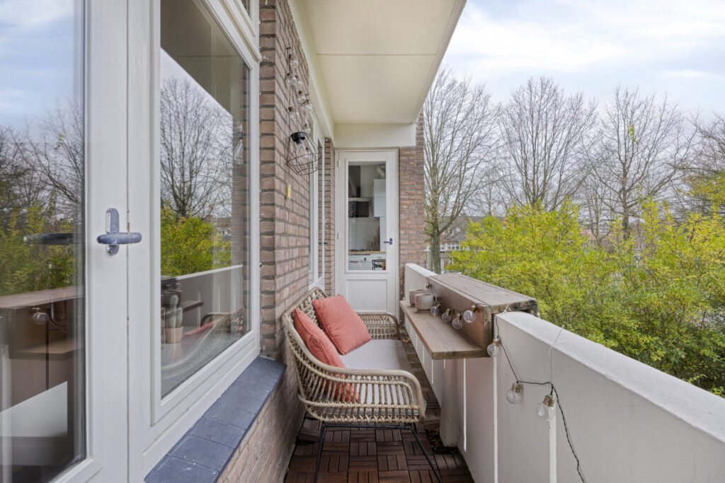 Ca. 6 m², gelegen aan de achterzijde op het noodwesten (vanaf ca. 15:30 uur zon). De balkontafel is inbegrepen.