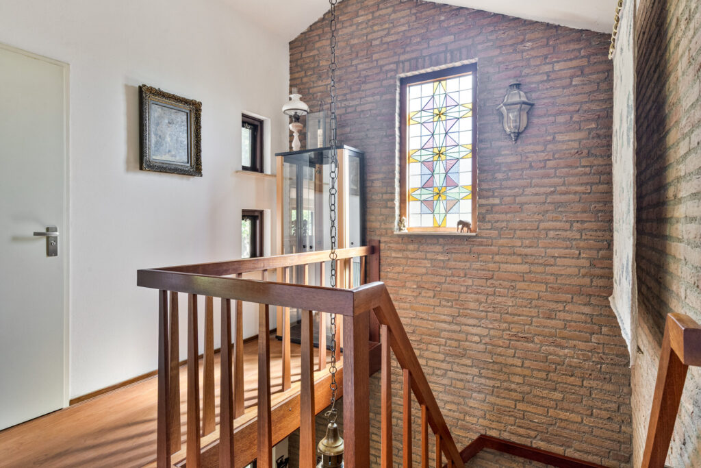 De overloop met open trappenhuis geeft toegang tot de 3 slaapkamers en de badkamer. De overloop evenals de slaapkamers zijn afgewerkt met laminaatvloeren.