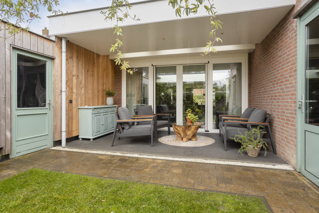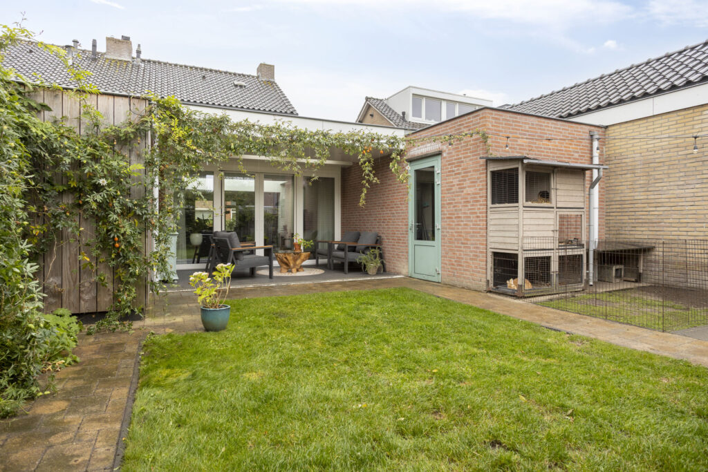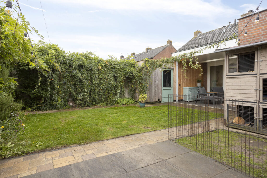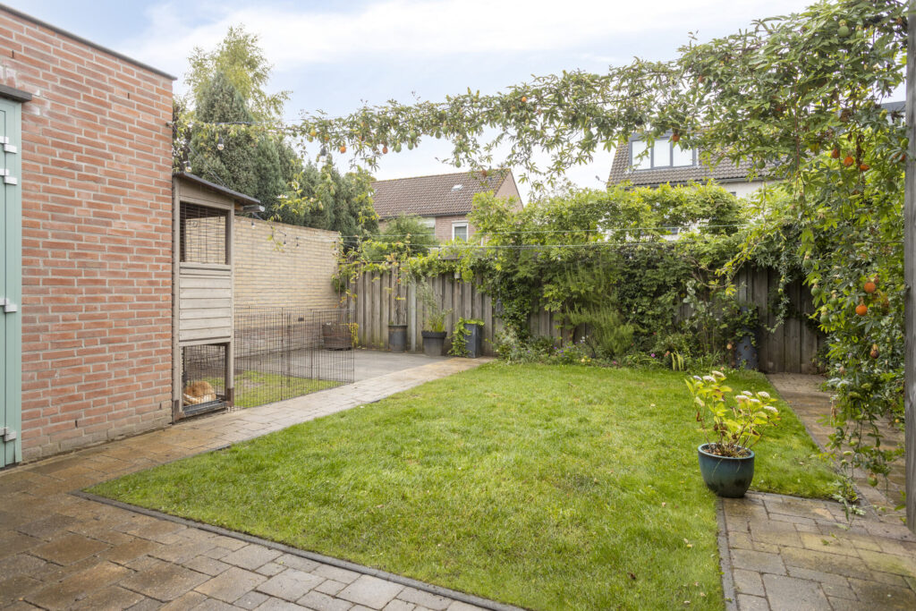 De achtertuin gelegen op het noordoosten, biedt veel privacy en is verzorgd aangelegd met sierbestrating, een gazon, diverse plantenborders en degelijke erfafscheiding. Tegen de woning is een fraai overdekt terras gelegen met lichtstraat, spotverlichting en diverse stroompunten. Tevens is de stenen berging bereikbaar met electra. De oprit is geheel bestraat en beschikt over een carport/overstek met verlichting evenals een oplaadpunt voor de elektrische auto (ter overname). De voortuin is verzorgd ingericht met vast groen.