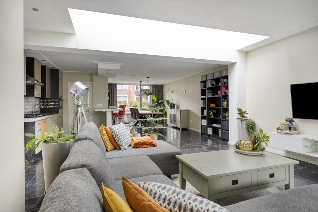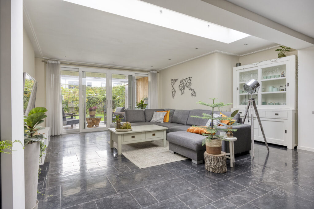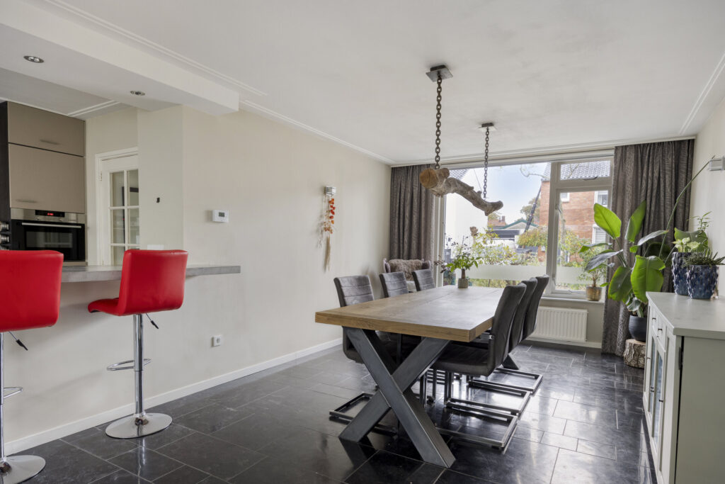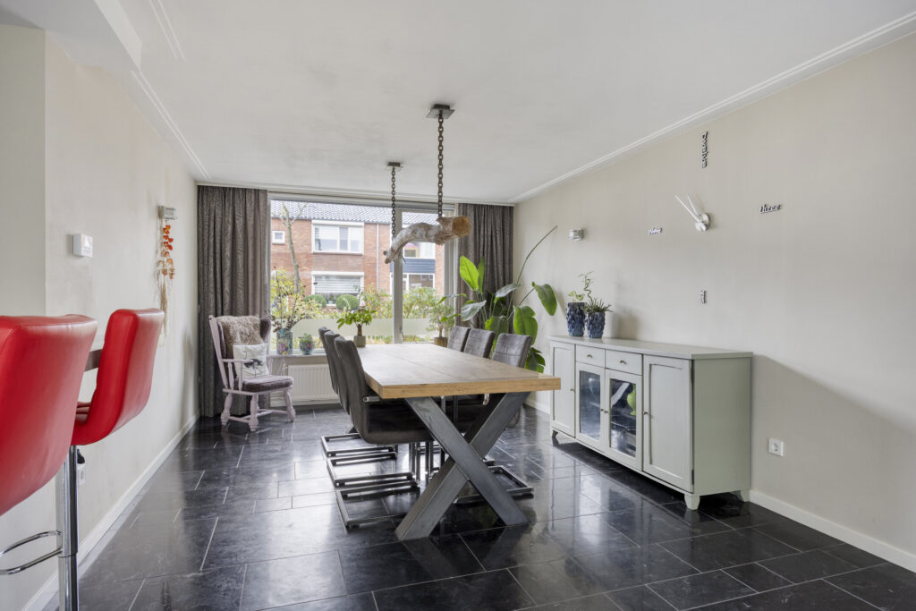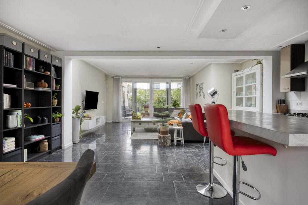 De woning is traditioneel gebouwd en grotendeels voorzien van onderhoudsarme kozijnen (kunststof en aluminium) met HR++ beglazing en diverse draai/kiep ramen. De kozijnen aan de voorzijde zijn van hout. De meterkast (2015) is voorzien van ruim voldoende groepen en heeft een krachtgroep t.b.v. de elektrische auto. De warmwatervoorziening wordt aangestuurd middels een CV-combiketel (AWB bj. 2017). Qua isolatie is het pand voorzien van dakisolatie (uitbouw) alsmede muurisolatie (uitbouw). De woning is aan de achterzijde over de volle breedte uitgebouwd en voorzien van een lichtstraat voor extra natuurlijk inval. De begane grondvloer evenals de eerste verdiepingsvloer zijn uitgevoerd in beton, de tweede verdiepingsvloer betreft een houten vloerconstructie. De begane grond is geheel afgewerkt met een Chinese harstenen tegelvloer met vloerverwarming (m.u.v. toilet). De wanden evenals de plafonds op de begane grond zijn grotendeels voorzien van strak stucwerk. De overloop op de eerste verdieping evenals de slaapkamers zijn afgewerkt met laminaatvloeren. De garage is inpandig bereikbaar, volledig geïsoleerd en voorzien van vloerverwarming.