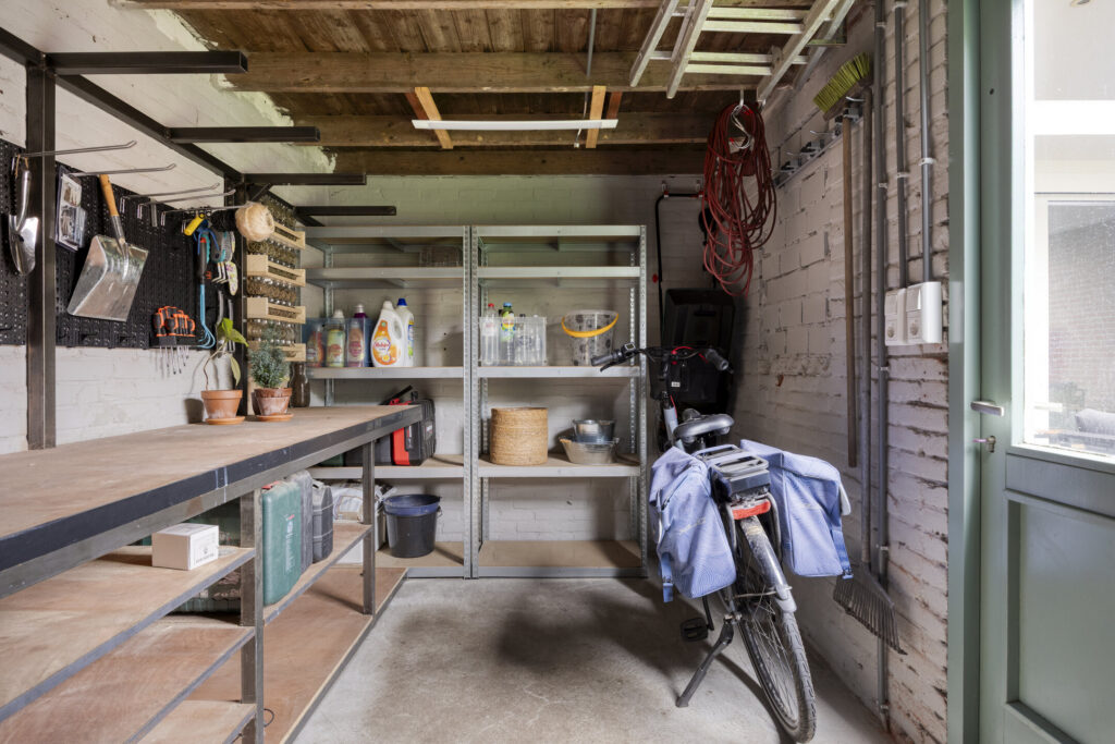 De garage (6.19 x 2.45 m) met vloerverwarming is inpandig bereikbaar, volledig geïsoleerd en heeft openslaande deuren naar de oprit. Tevens bevinden zich hier de aansluitingen ten behoeve van de wasapparatuur met eigen groepenkast. Via een loopdeur is er tevens toegang tot de tuin. Deze ruimte biedt de mogelijkheid voor het creëren van één slaapkamer evenals badkamer op de begane grond.