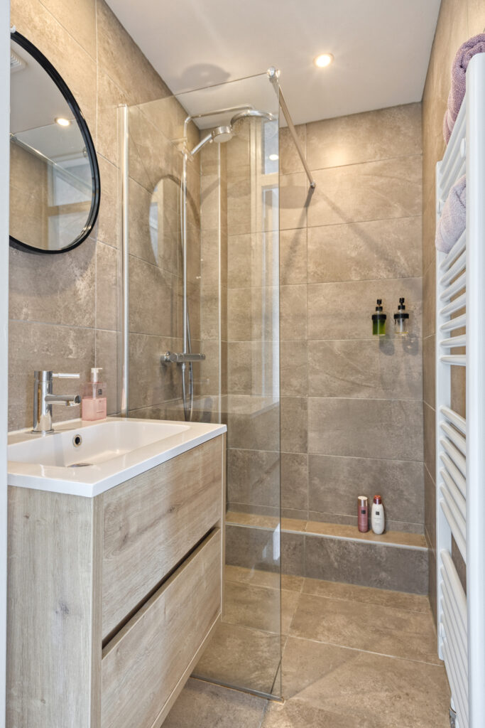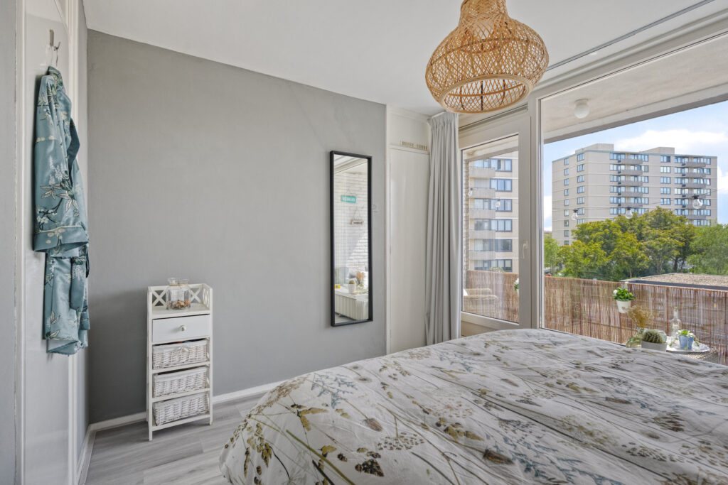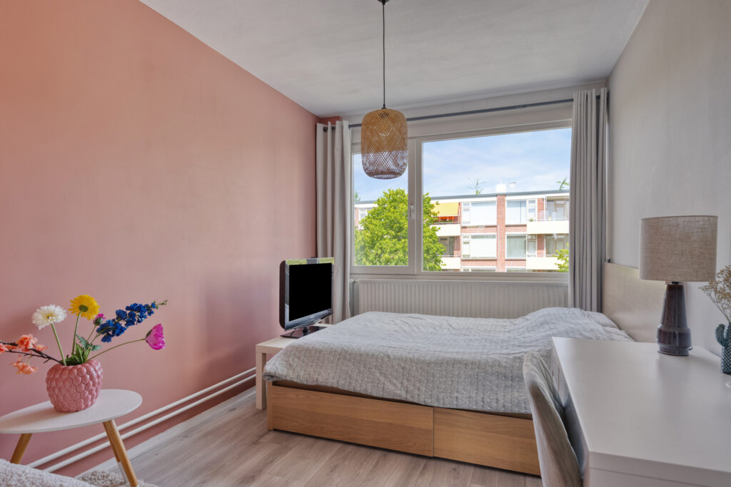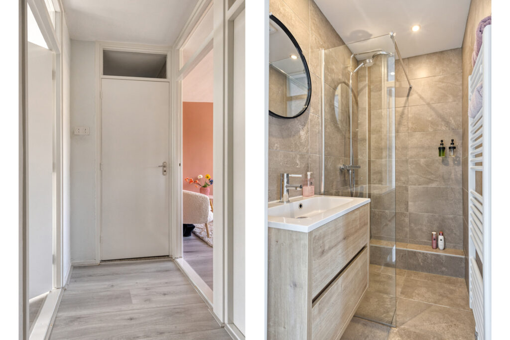 Overloop met toegang tot de slaapkamers en badkamer; slaapkamer 1 aan de achterzijde gelegen (ca. 3.65 x 3.00m) met vaste kast en toegang tot het balkon (ca. 4.60 x 1.30m); slaapkamer 2 aan de voorzijde (ca. 3.85 x 2.00m); slaapkamer 3 aan de voorzijde (3.85 x 2.60m); moderne badkamer met inloopdouche en wastafelmeubel (ca. 1.65 x 1.20m).