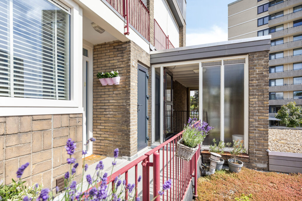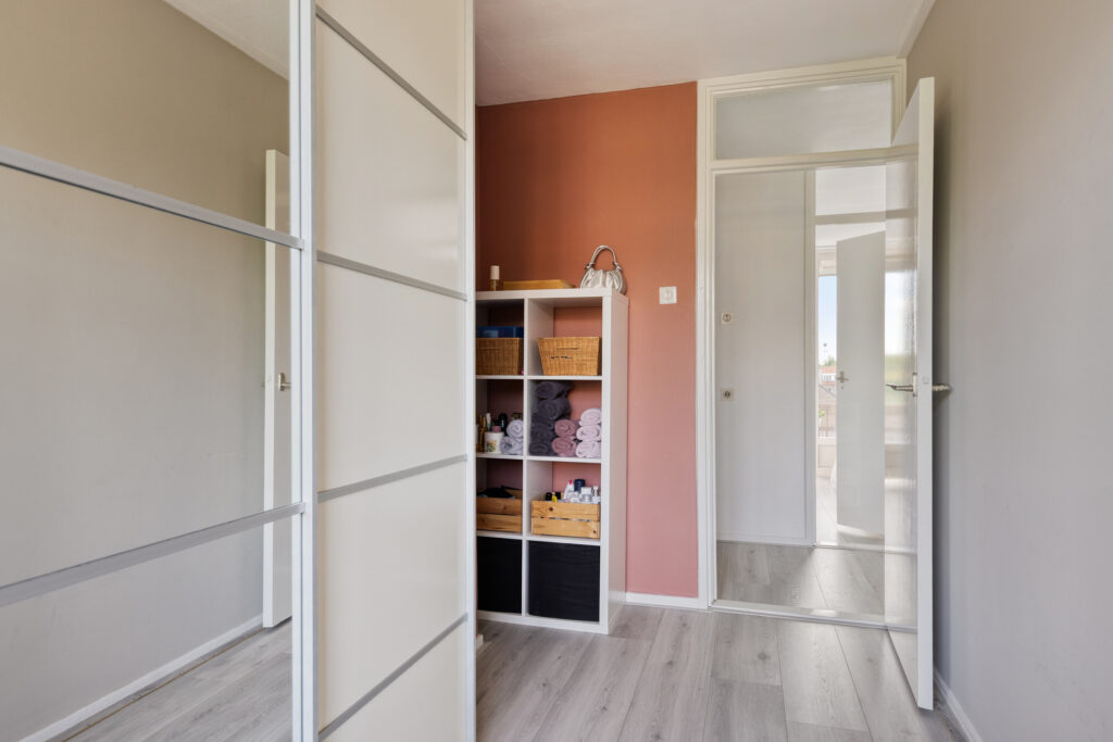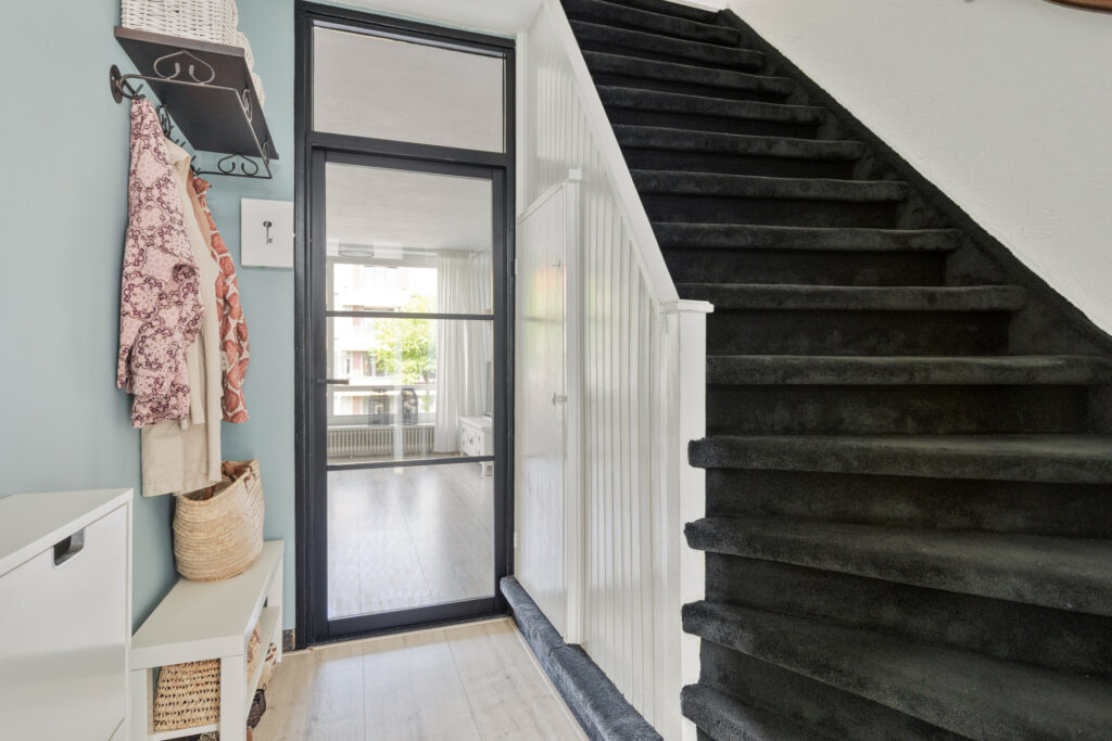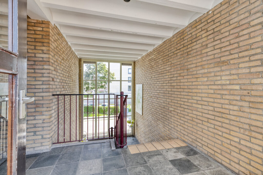 Centrale hal met entree, brievenbussen en trapopgang naar de galerij waar zich de meterkast met bergruimte en buitenkraan bevindt.