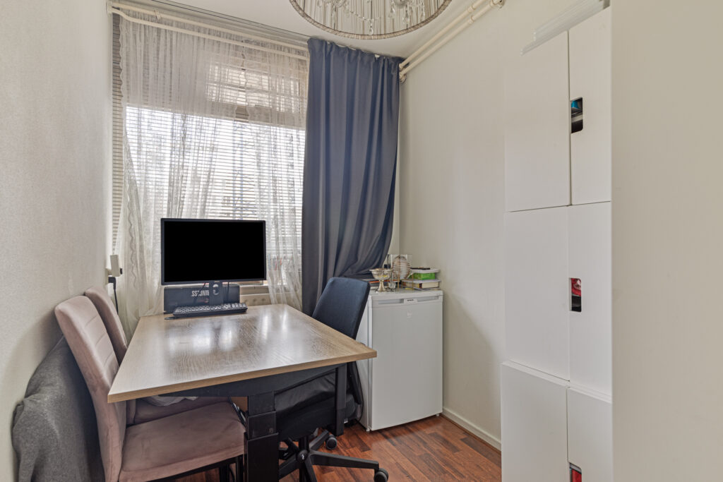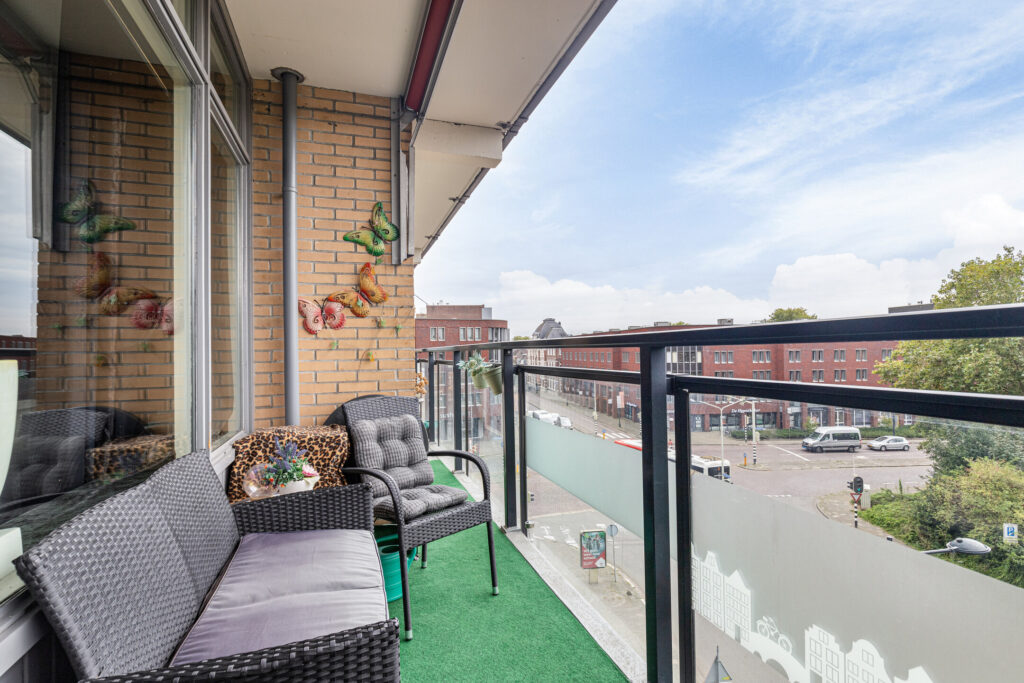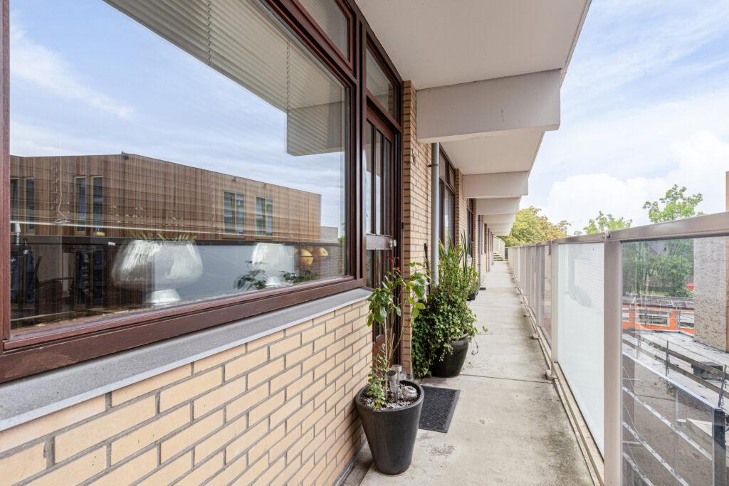 Het appartement beschikt over een ruim balkon gelegen toegankelijk vanuit de woonkamer en één slaapkamer. Het balkon biedt vrij uitzicht en is voorzien van twee elektrisch bedienbare zonneschermen. Op de begane grond is een berging gelegen van ca. 9 m². In het souterrain is er tevens een ruime gemeenschappelijke fietsenberging.