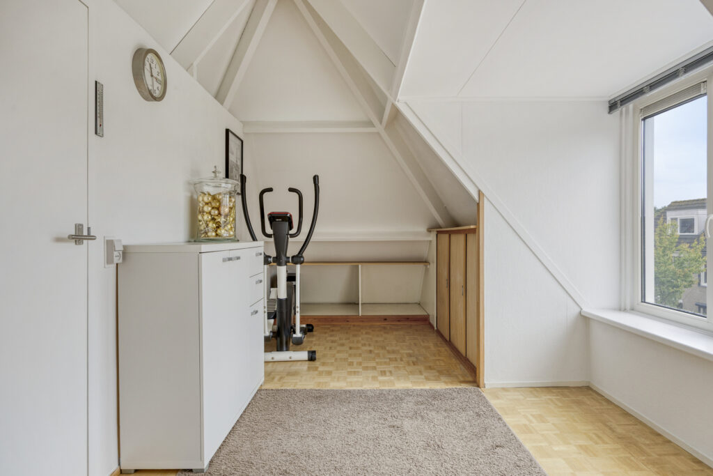 – Slaapkamer 4 (ca. 3.05m x 5.75m) met kunststof dakkapel en veel bergruimte in de kniesschotten.