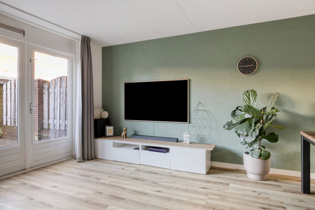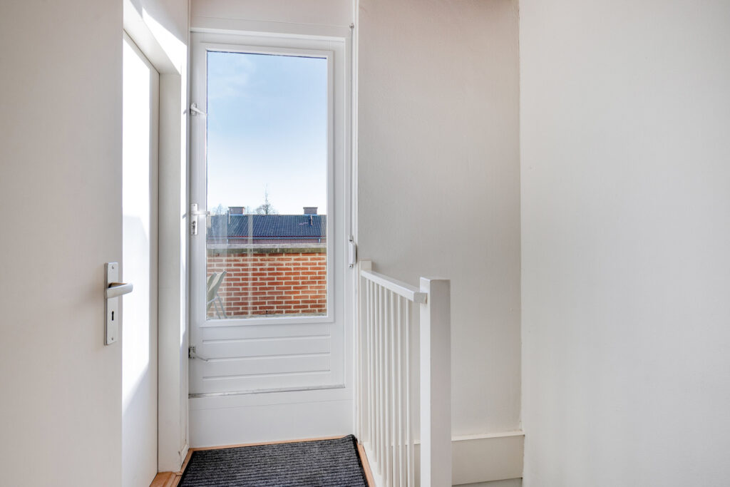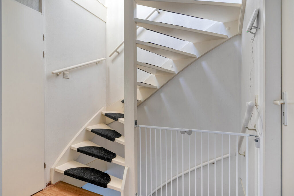 Via de voortuin bereikt u de entree/hal, deze geeft toegang tot de meterkast, trapopgang naar de eerste verdieping en de vernieuwde, volledig betegelde toiletruimte (2024) met hangend closet en fonteintje. Op de vloer van de gehele begane grond ligt PVC.