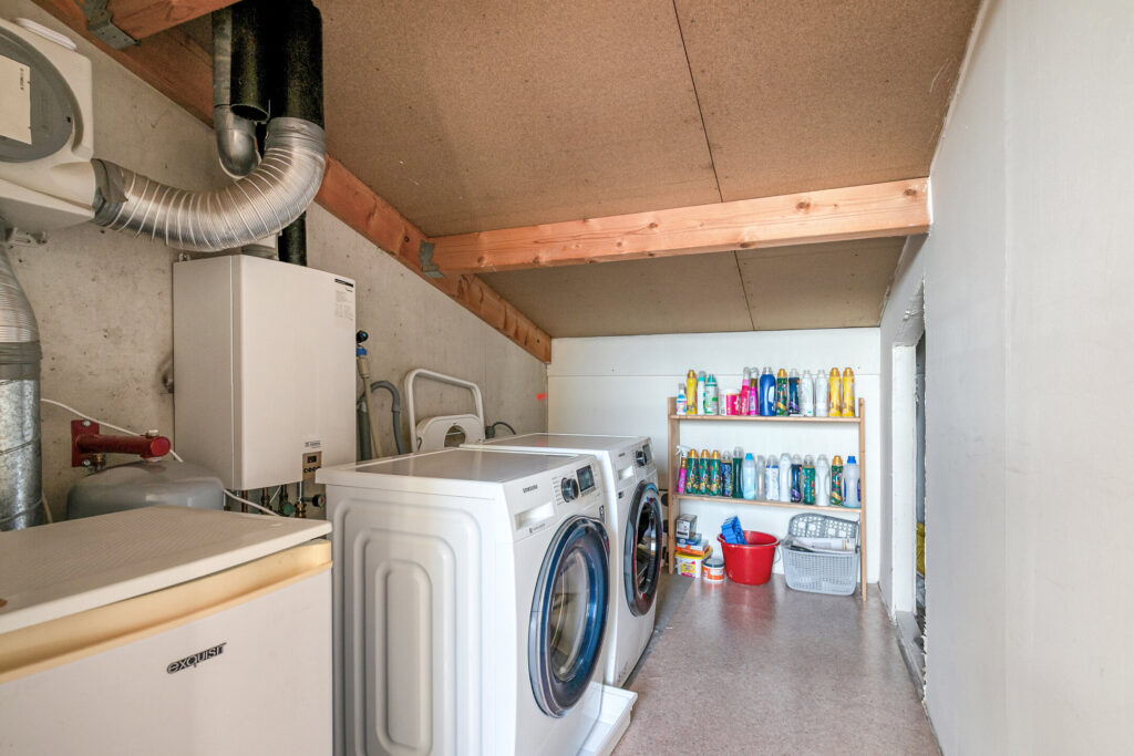 De CV-/wasruimte beschikt over veel opbergruimte, HR-ketel (Remeha Bj. ca. 2014), aansluiting voor de was- en droogapparatuur en de mechanische ventilatie-unit.