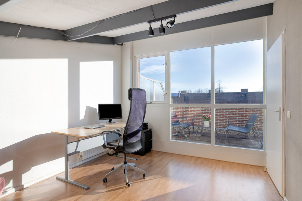 De overloop geeft toegang tot de drie slaapkamers, de badkamer en middels een vaste trap tot de tweede verdieping.