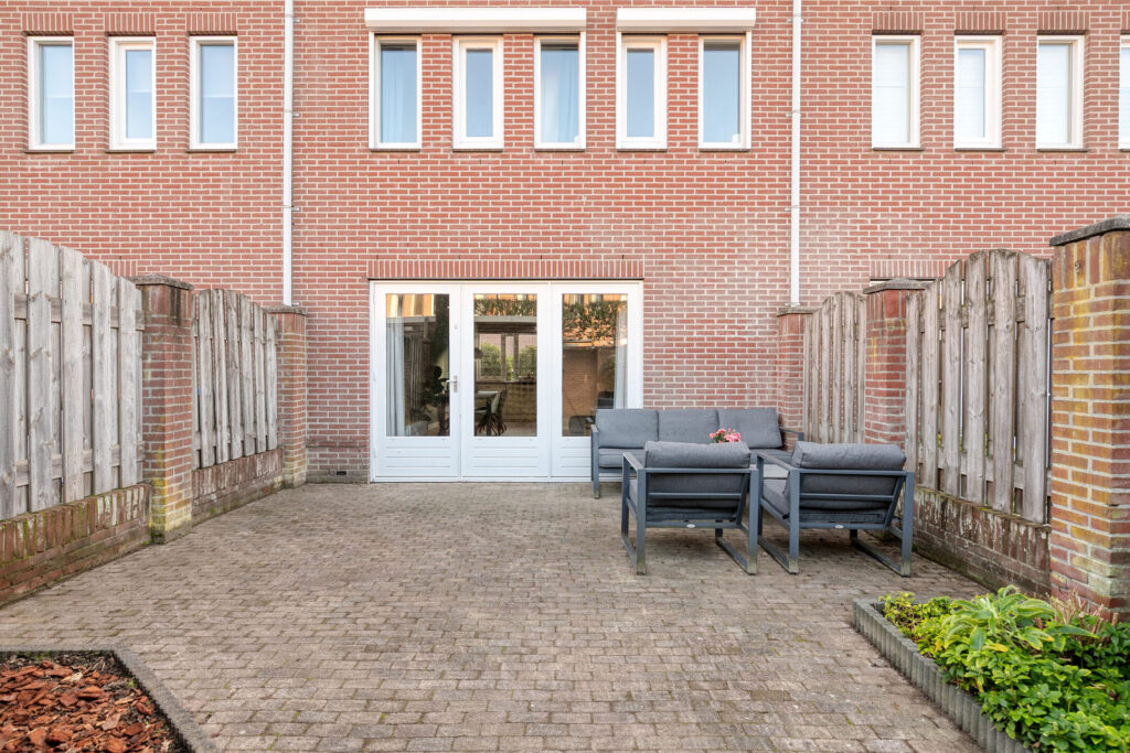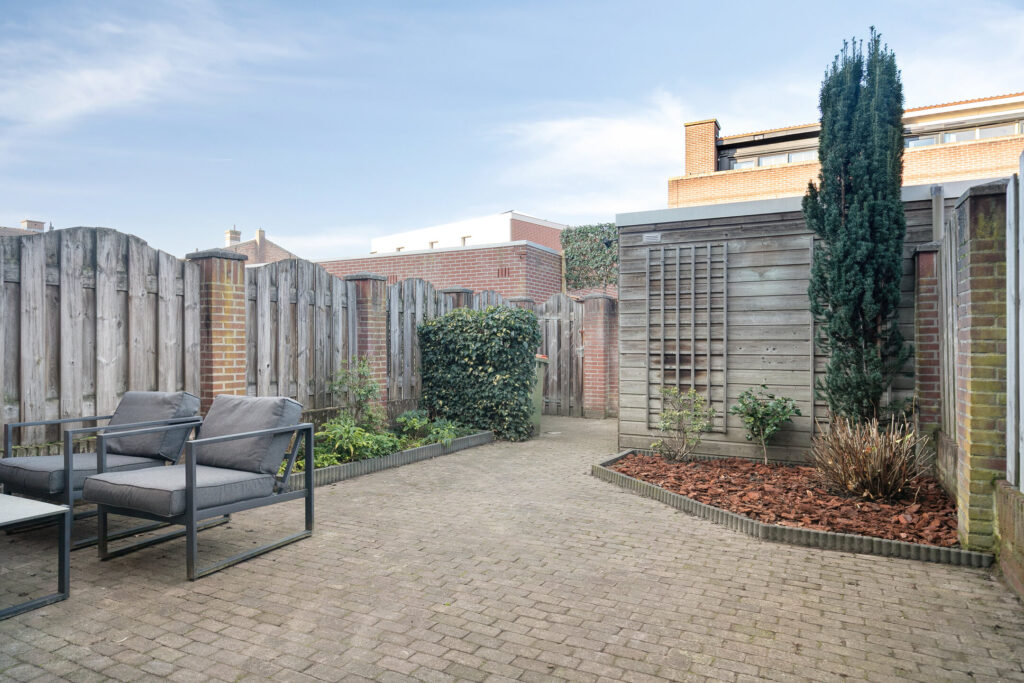 De nette achtertuin is gesitueerd op het noorden en grotendeels voorzien van sierbestrating en borders met vaste beplanting. Aan de achterzijde van de tuin is de vrijstaande berging gesitueerd welke voorzien is van elektra, tevens treft u hier een achterom.