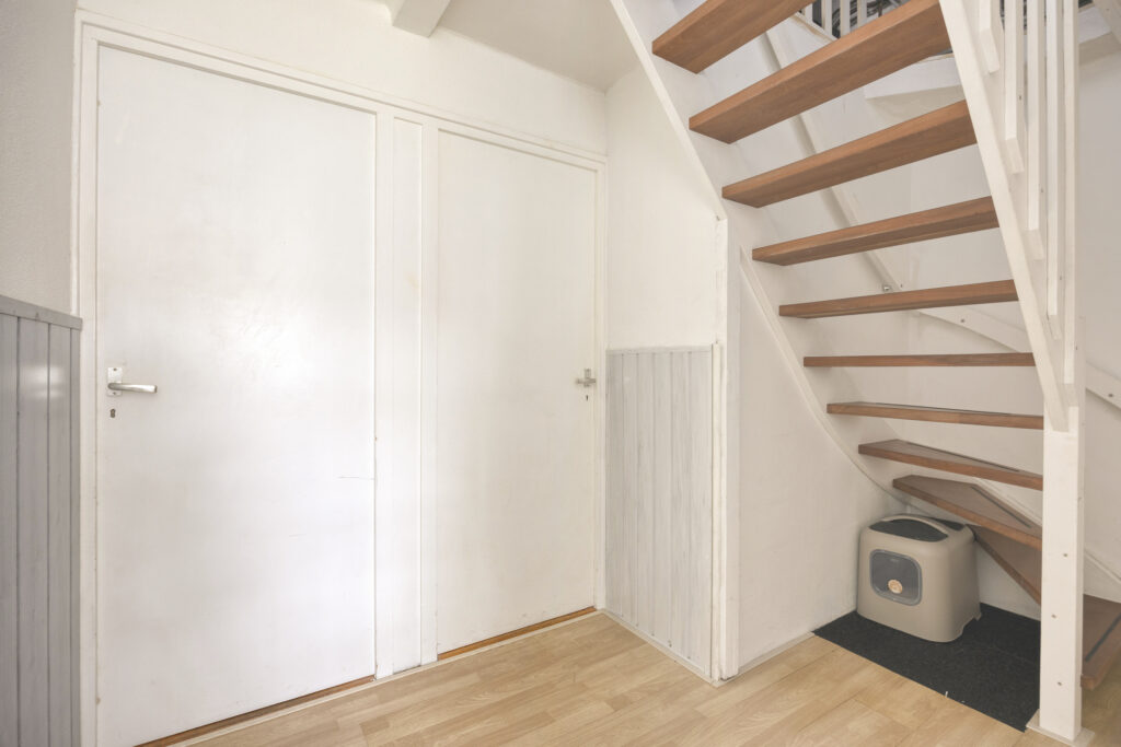 Overloop, met vaste trap naar de zolderverdieping en toegang tot de slaapkamers en de badkamer.