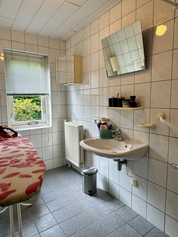 Entree/hal voorzien van meterkast (8 groepen en 2 aardlekschakelaars), geheel betegelde toiletruimte met closet en fonteintje en toegang tot de woonkamer; De L-vormige woonkamer met open keuken (totaal ca. 41m²) is voorzien van een laminaatvloer, lamellen raambekleding (blijft achter) en in het midden van de woonkamer bevindt zich een praktische provisiekast en de (afgesloten) hal met de trapopgang naar de eerste verdieping met garderobe; Open keuken (2019) in hoekopstelling en voorzien van een koelkast, 2 pits inductie-kookplaat met flexibele zone, spoelbak, combi-oven/magnetron, vaatwasser en diverse onder- en bovenkasten/laden; Vanuit de keuken is het tussenportaal te bereiken welke toegang biedt tot de achtertuin, de garage en de slaapkamer op de begane grond; slaapkamer I (ca. 3.75 x 3.00m.) met badkamer en-suite voorzien van vloerbedekking en een vaste kast; badkamer I (ca. 3.00m. x 1.50m.) voorzien van inloopdouche, closet en een wastafel; royale garage (ca. 7.50m. x 2.80m.) met de aansluitingen voor de wasapparatuur, stalen kanteldeur, uitstortgootsteen en vlizotrap naar de bergzolder. Voor de garage is een ruime oprit gelegen; De zonnige tuin met achterom is gelegen op het zuiden en is verzorgd aangelegd.