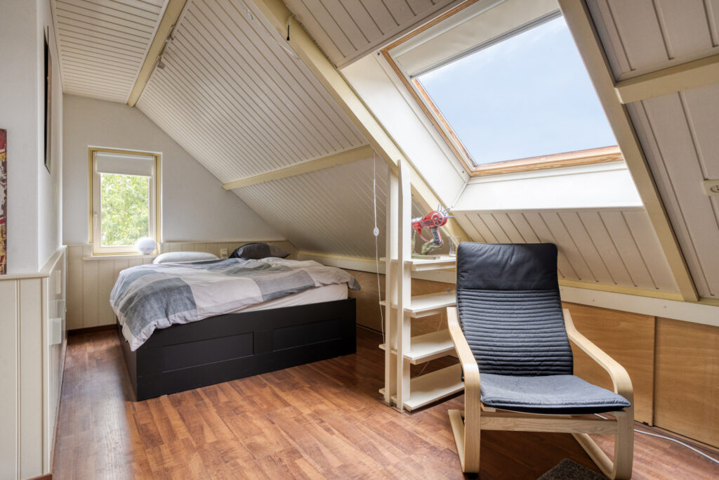 – Slaapkamer 1 (ca. 5.00m x 3.49m) is gelegen aan de achterzijde van de woning en voorzien van een kleine dakkapel;