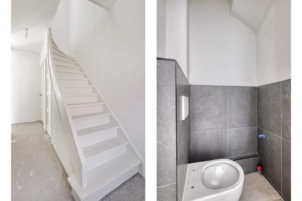 Overloop met trapopgang naar de 2e verdieping, vaste kast met aansluiting voor de wasapparatuur en een aparte voorbereide toiletruimte; slaapkamer 1 aan de voorzijde met vaste kast (ca. 3.38 x 3.25 m); slaapkamer 2 aan de voorzijde (ca. 1.92 x 1.85 m); slaapkamer 3 aan de achterzijde (ca. 3.60 x 3.38 m); de moderne badkamer heeft een ruime inloopdouche en een aansluiting voor een breed wastafelmeubel (ca. 2.60 x 1.95 m).