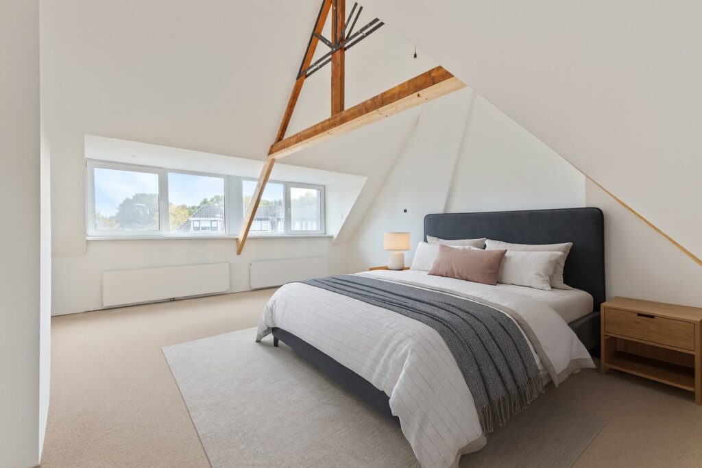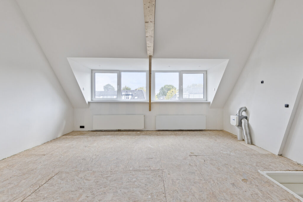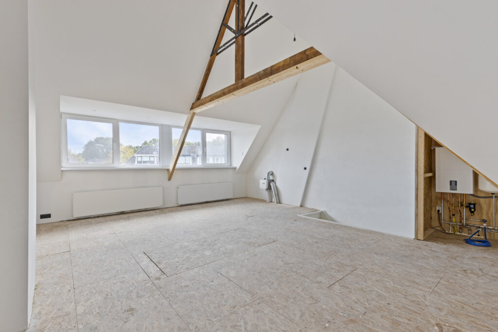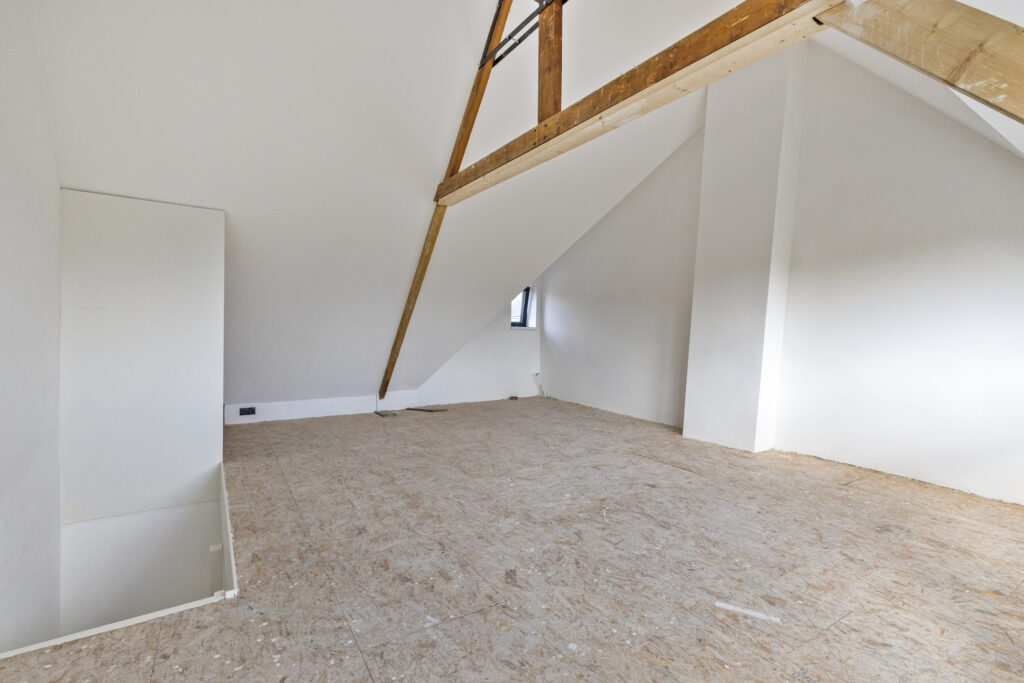 Grote open slaapkamer 4 van ca. 32 m² met brede dakkapel aan de achterzijde. Deze slaapkamer kan eenvoudig ingedeeld worden naar 2 volwaardige slaapkamers, eventueel met een 2e badkamer. Hier bevinden zicht tevens de CV-ketel en unit mechanische ventilatie.