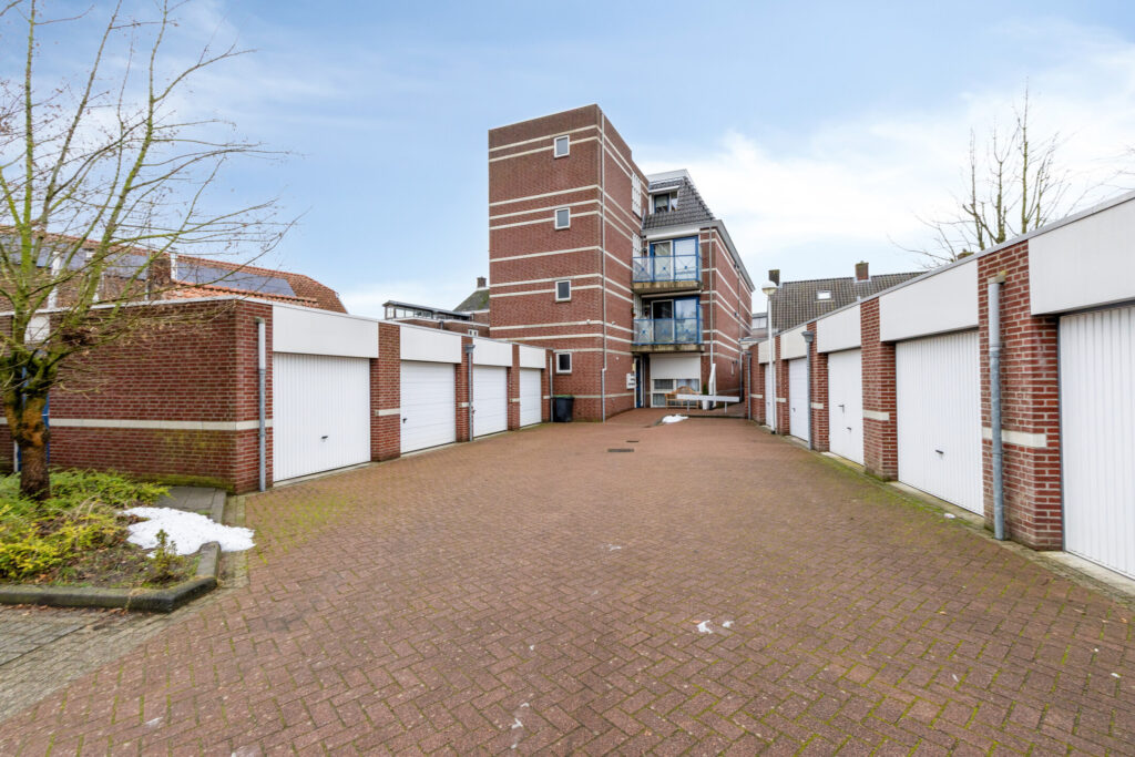 Het appartement beschikt over een ruime garagebox van ca. 18m² met een elektrisch bedienbare sectionaaldeur en een aparte zijdeur om met de fiets binnen te komen. De garagebox maakt geen onderdeel uit van het appartementencomplex.