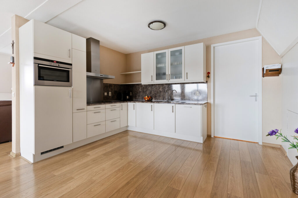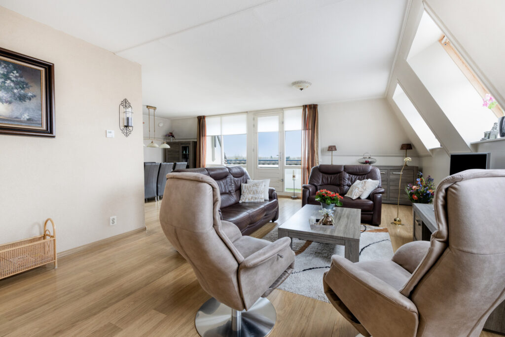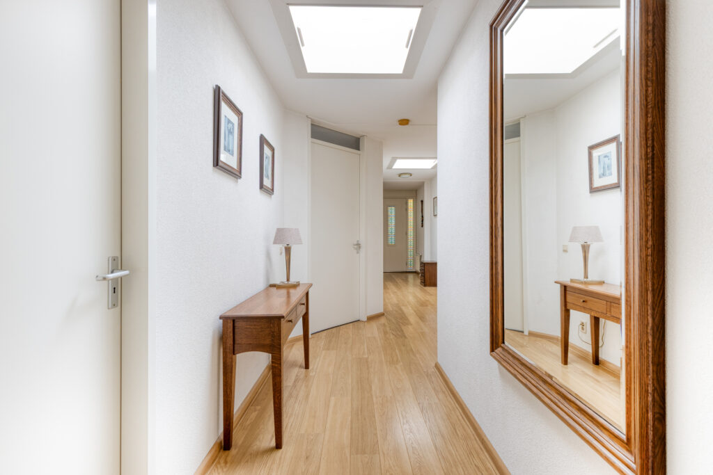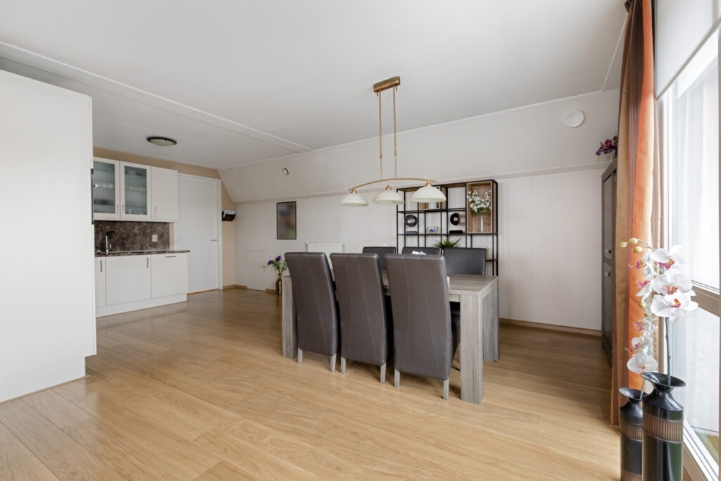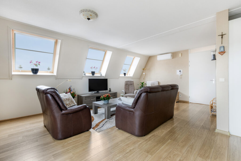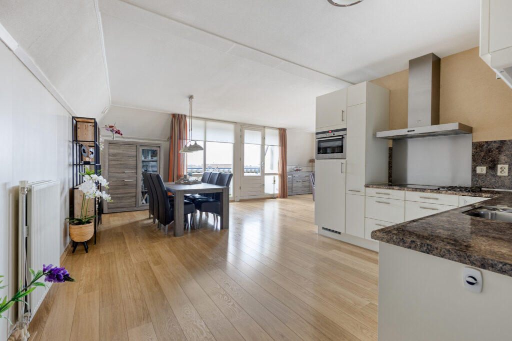 Hal met entree, meterkast, garderobenis, enkele lichtkoepels voor lichtinval, en toiletruimte met wandcloset en fontein; slaapkamer I aan de achterzijde met toegang tot een balkon (ca. 4.45 x 3.60 m); slaapkamer II aan de achterzijde (ca. 3.65 x 2.65 m) met inloopkast (ca. 1.65 x 1.65 m) en toegang tot een balkon; slaapkamer III aan de zijkant (ca. 4.05 x 2.45 m, ca. 8 m²); grote badkamer voorzien van douchecabine, dubbele wastafel met kolomkasten, toilet en design radiator (ca. 3.80 x 2.90 m); riante L-woonkamer van maar liefst 45 m² met ruim balkon aan de voorzijde (woonkamer ca. 8.40 / 8.10 x 7.30 m, balkon ca. 3.70 x 1.20 m); open keuken met compleet uitgevoerd L-keukenblok voorzien van 4 pits inductiekookplaat, afzuigkap, oven, koelkast en vaatwasmachine (ca. 4.20 x 2.85 m); grote bijkeuken met aansluitingen voor was- en droogapparatuur, cv-ketel en unit mechanische ventilatie (ca. 3.80 x 2.80 m).
