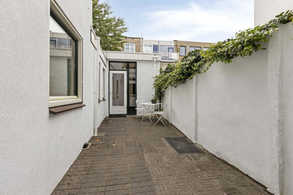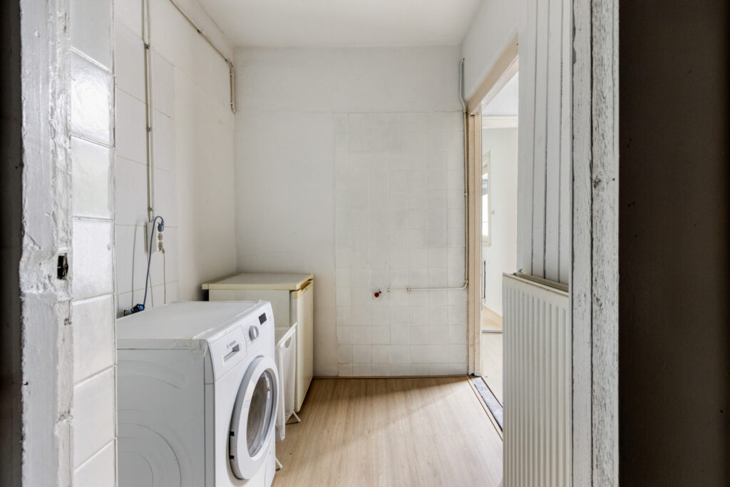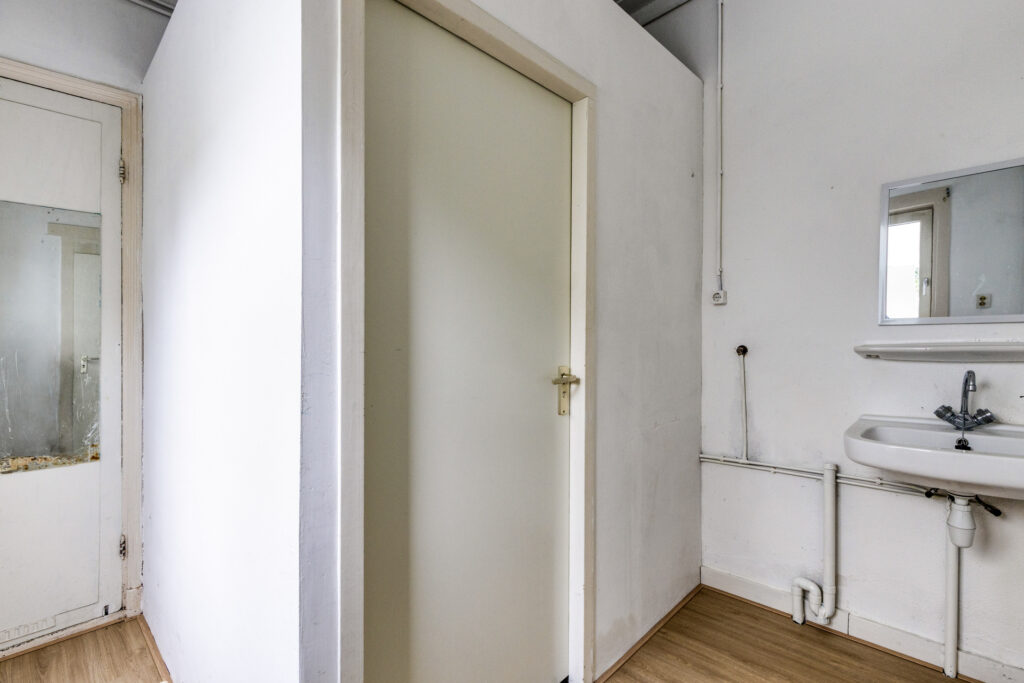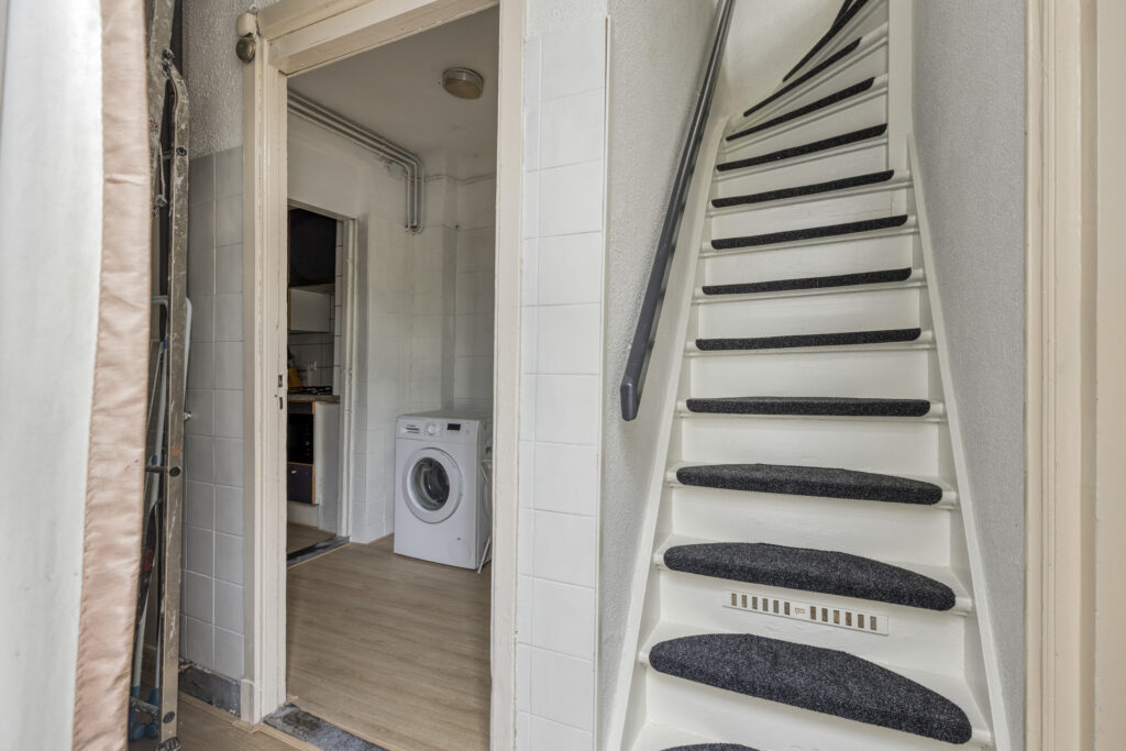 Vanuit de keuken heeft u tevens toegang tot de bijkeuken, hier is de aansluiting voor de was- en droogapparatuur aanwezig. Tussenhal met opstelplaats voor de Cv-ketel (bj. 2018), loopdeur naar de stadstuin, trap opgang naar de eerste verdieping en toegang tot de badkamer. Badkamer voorzien van douchecabine, wastafel en opbergruimte. tussenhal met wastafel met toegang tot het achterhuis (later aangebouwd), kantoor/werkkamer met toegang tot slaapkamer III voorzien van volledig betegelde toiletruimte met wastafel, vanuit de slaapkamer heeft u middels een loopdeur toegang tot de stadstuin.